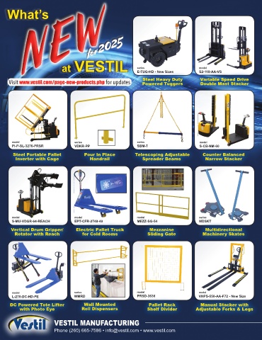 Vestil Manufacturing Corporation is an industry leader in the manufacturing and distributing of industrial material handling equipment. We feature over 1,000 different product lines, many of which are in stock and ready for immediate shipment.