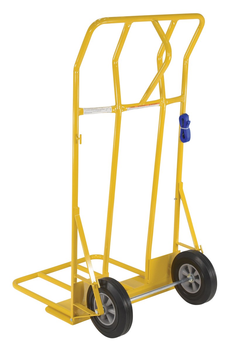These heavy duty, extra wide hand truck with a folding extension nose plate are ideal for handling large, bulky items. Extra strong tubular, steel frame. Baked-in powder-coated toughness. A strap is included to hold items in place while transporting.