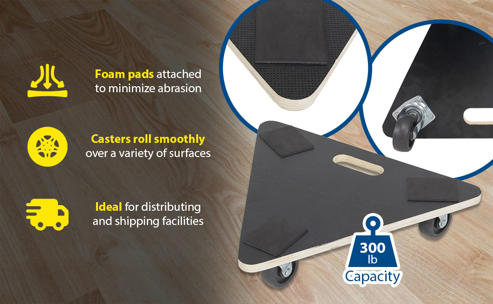 HDOS-TRI-18-300 HDOS-TRI-18-300Hardwood Triangle Dolly Deck 16-1/2 In. x 18-1/2 In. x 4 In. 300 Lb. Capacity BlackUniform Capacity (lb.): 300