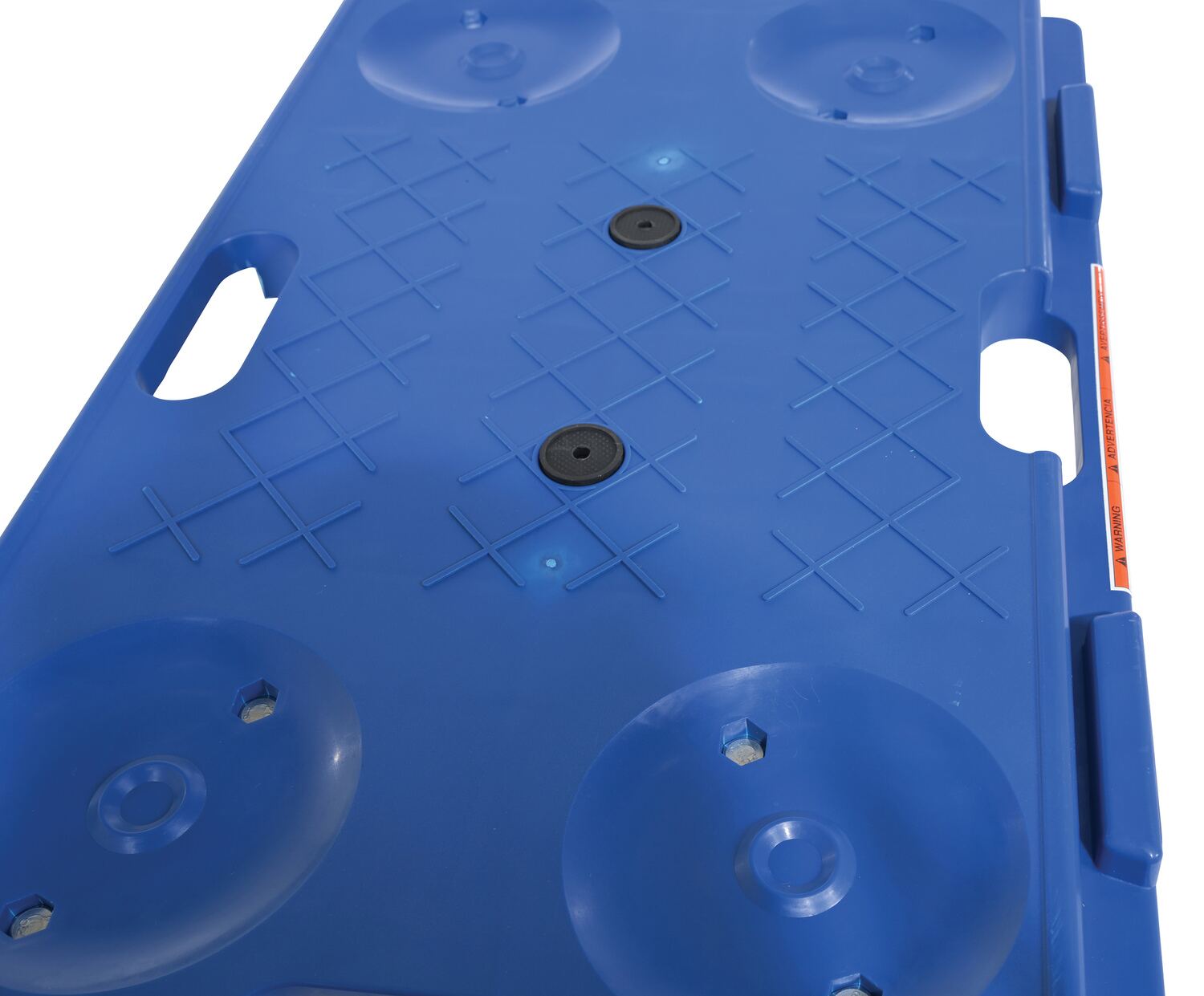 Strong, lightweight dollies include special interlocking edges that allow users to connect multiple dollies together to form a larger platform size. Hand holes are included for convenient carrying, while special pockets in the deck allow for easier stacking. Units roll on (4) swivel 4" x 1-1/4" polypropylene casters. Handle height when installed is 26".