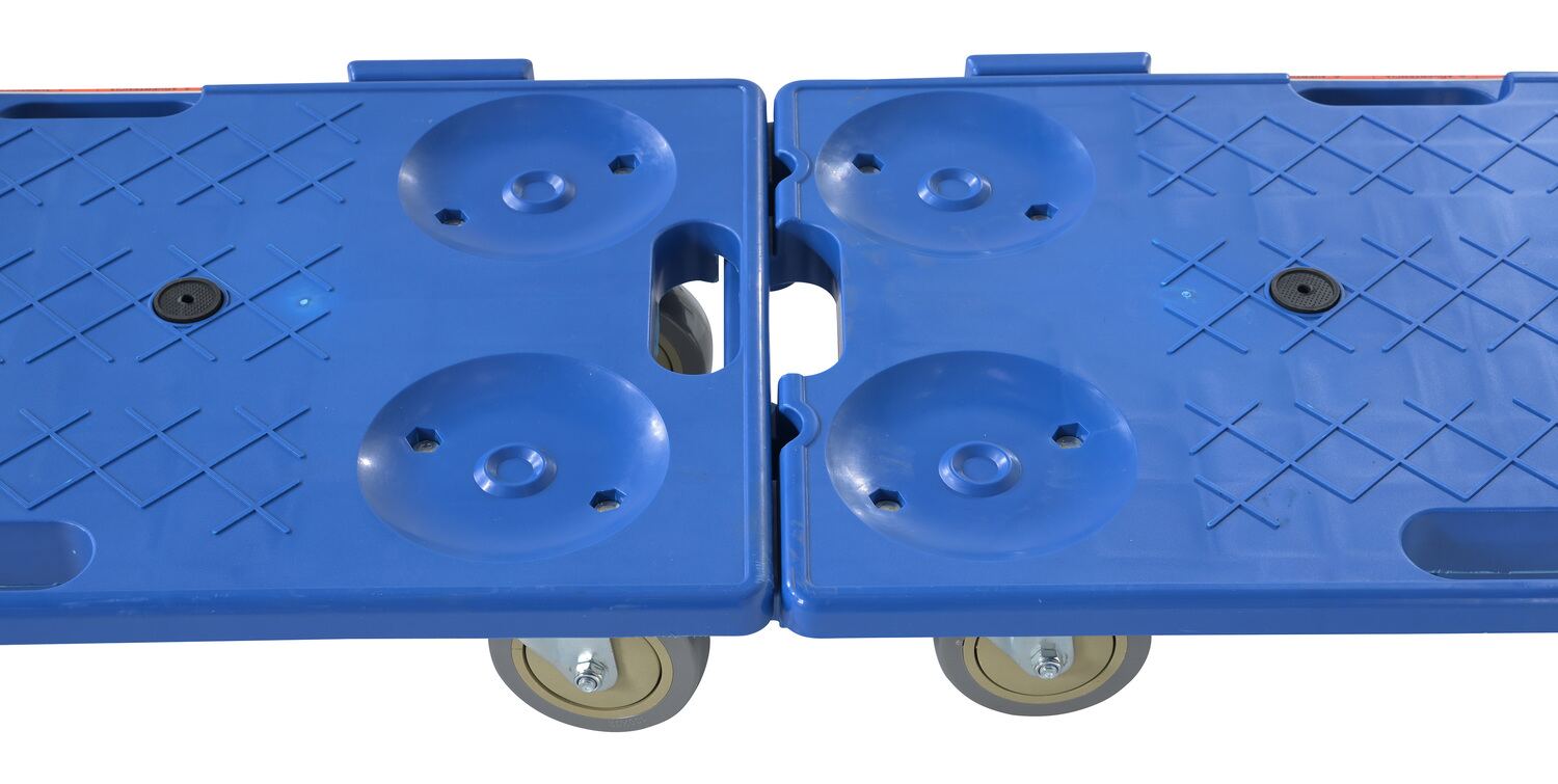• Multiple dollies connect together to form a larger platform size