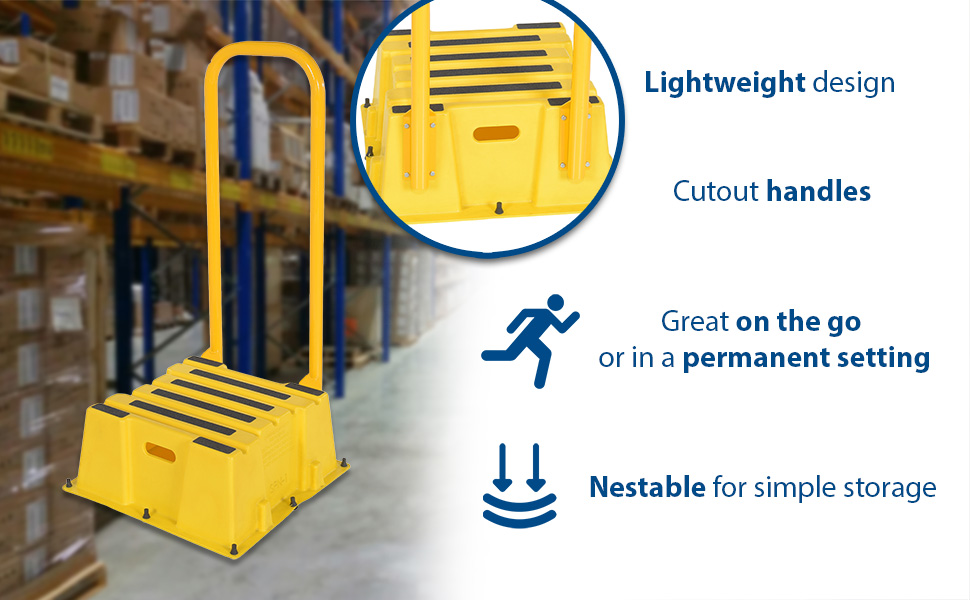 SPN-3-YL-HR SPN-3-YL-HRPolyethylene Nestable with Handrails 3 Step 500 Lb. Capacity YellowUniform Capacity (lb.): 500