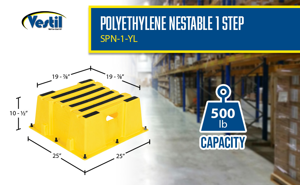 SPN-1-YL SPN-1-YLPolyethylene Nestable 1 Step 500 Lb. Capacity YellowUniform Capacity (lb.): 500