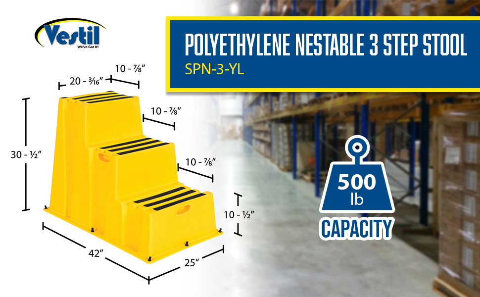 SPN-3-YL SPN-3-YLPolyethylene Nestable 3 Step 500 Lb. Capacity YellowUniform Capacity (lb.): 500
