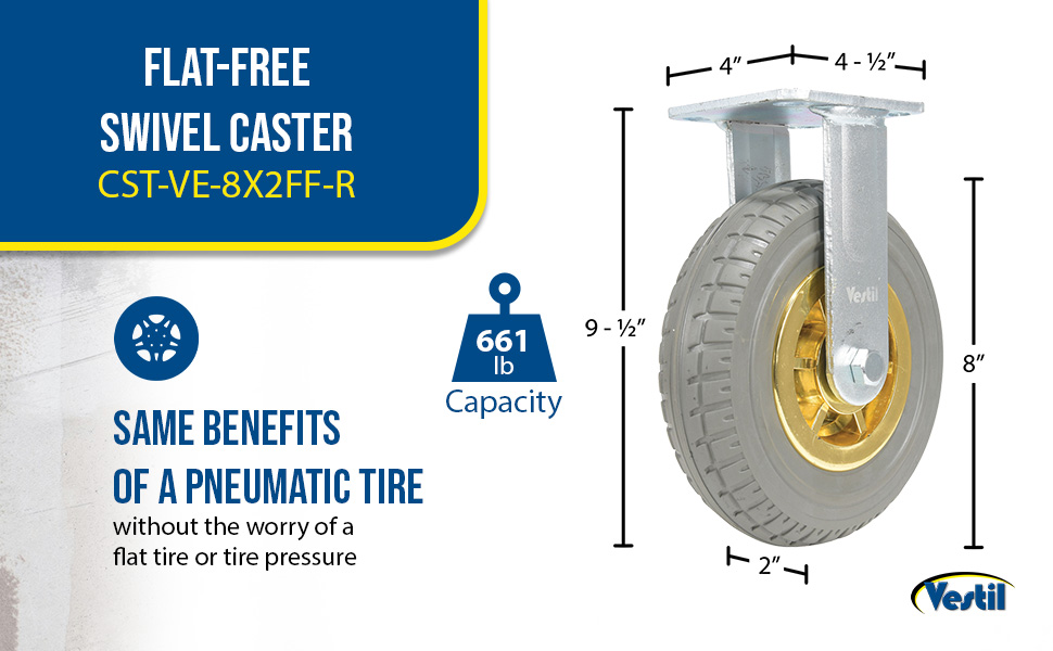 A pneumatic tire without the worry of a flat tire or hassle of refilling air. This includes a quiet, smooth, cushioned ride, that can protect fragile cargo and provide shock absorption. Additionally, it provides more options in both size and capacity compared to other flat-free designs.