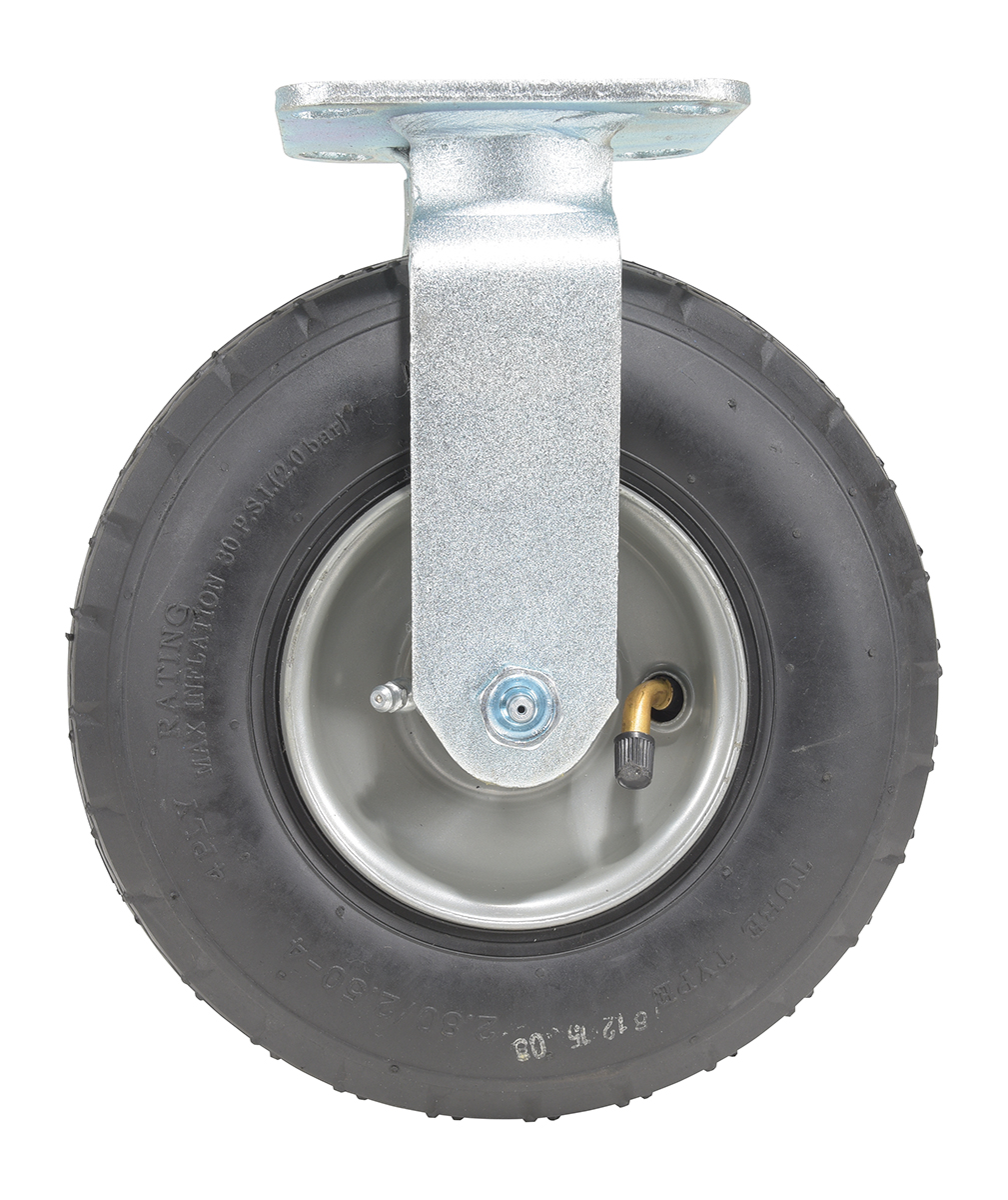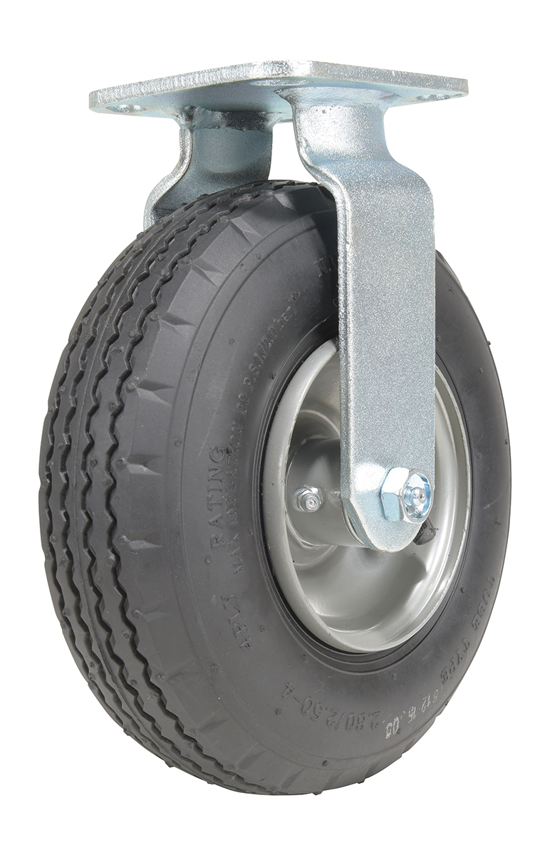 Pneumatic casters provide a shock absorbent ride that cushions and protects fragile loads. They offer a smoother ride over uneven difficult terrain. Likewise, pneumatic casters provide better grip and control over challenging debris.
