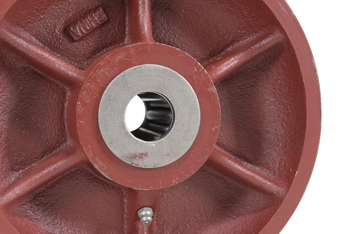 The ductile steel wheel can withstand high temperatures and absorb high impact without failure. The wheel is made out of ductile iron, heavy duty core and wheel face. This wheel is unbreakable in usual service and the tensile strength is 70,000 PSI. The wheel is capable of carrying incredibly heavy loads and perfect for extreme heavy duty applications. Zerk fitting on the wheel.