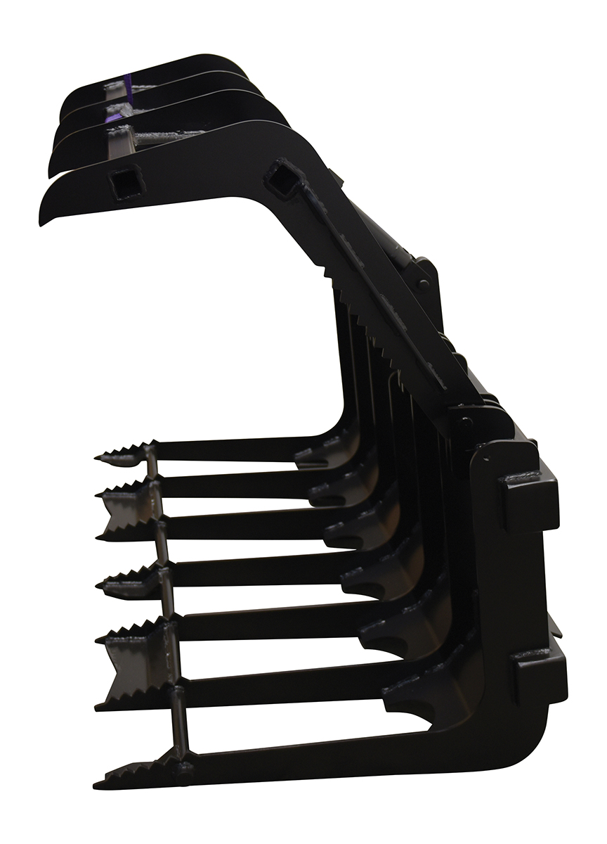 A Skid Steer Grapple Bucket is a great tool for landscaping and other residential operations. With a simple attachment, the bucket can be in place and ready to use almost immediately. Constructed of steel, the grapple bucket shows long lasting strength throughout use. With the help of the leading edge and two over the top arms, this unit is perfectly designed for clearing brush and overgrown shrubbery. The open grate style bottom allows debris and other loose material to fall through, leaving only the intended objects in the bucket.