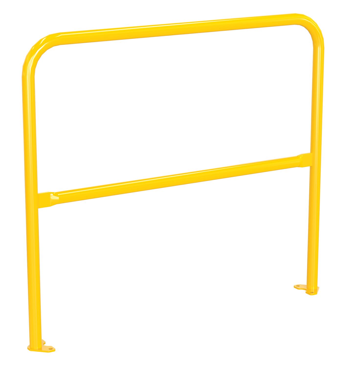 The pipe safety railing adds protection to pathways and dock areas. The base plate not only allows for a quick installation but also gives the steadiness and strength that is needed from a safety railing. With this mounting style the unit can be permanently installed or moved between locations. The upper and lower design gives the user stability and protection against potential falls. Powder-coated yellow finish. The VDKR series safety rail products comply with U.S. Occupational Safety and Health Administration (OSHA) General Industry requirements for guardrail systems in 29 CFR 1910.29.