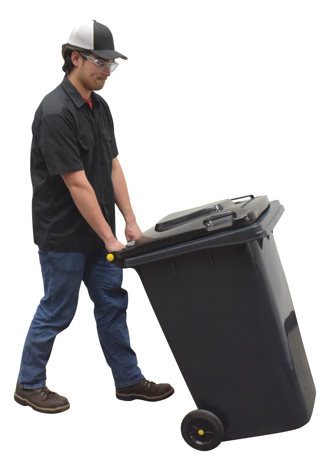 Durable high density polyethylene (HDPE) construction with stands subzero cold and extreme summer heat. Great for high traffic areas such as: warehouses, fairs, ball parks, schools, etc. Each container includes two wheels for easy portability. Hinged lid keeps rain out. Keep your waste out of eyesight in our heavy duty and easy to move refuse containers.