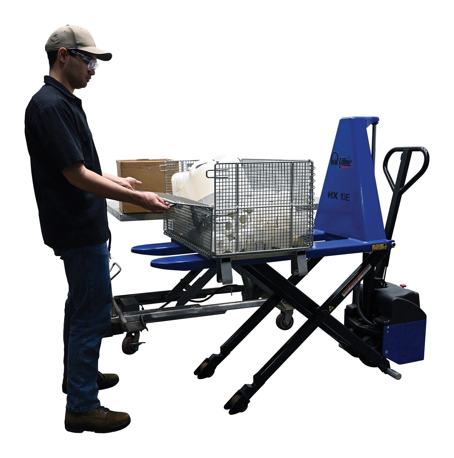 Ideal for skids, baskets, and work applications. Electric pump has chrome plated piston. Features a very steady working platform, minimizing rocking and movement in all directions. Stabilizers positioned at the rear improved balance, making work easier when lifting and working with heavy loads. DC powered with battery and an onboard charger. Check Out Vestil's Other Pramac Products: