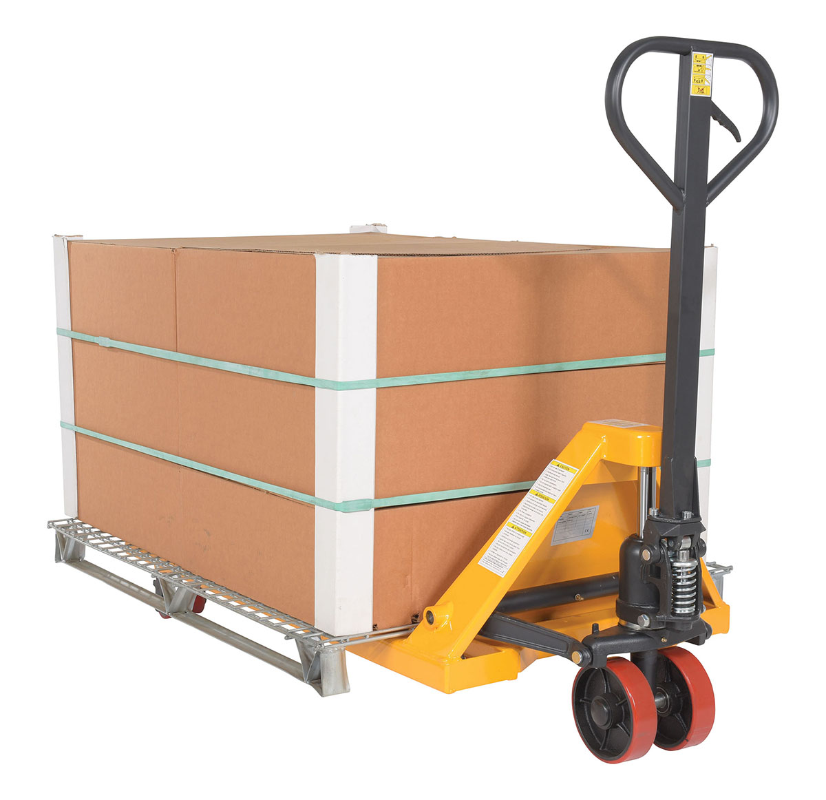 Proven ergonomic design has been time-tested for providing years of reliable usable. An economical way for one person to move heavy pallet loads without the use of a fork truck. Ergonomic design requires only 75 lbs. of pulling force when fully loaded. Spring loaded loop handle automatically returns to vertical position when not in use. Chrome-plated hydraulic pump piston for long seal life. Individual fork width is 7".