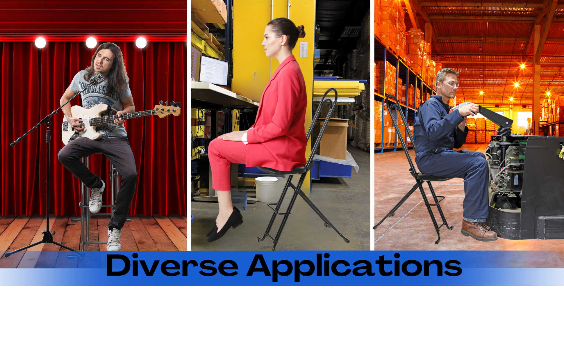 The CPRO-800LP model is not only convenient but easy to use. Simply unfold the rear legs and slide the contoured padded seat to the desired ergonomic height using the infinite adjustment for optimum work posture. Folds up to a 4" profile for easy portability and storage.
