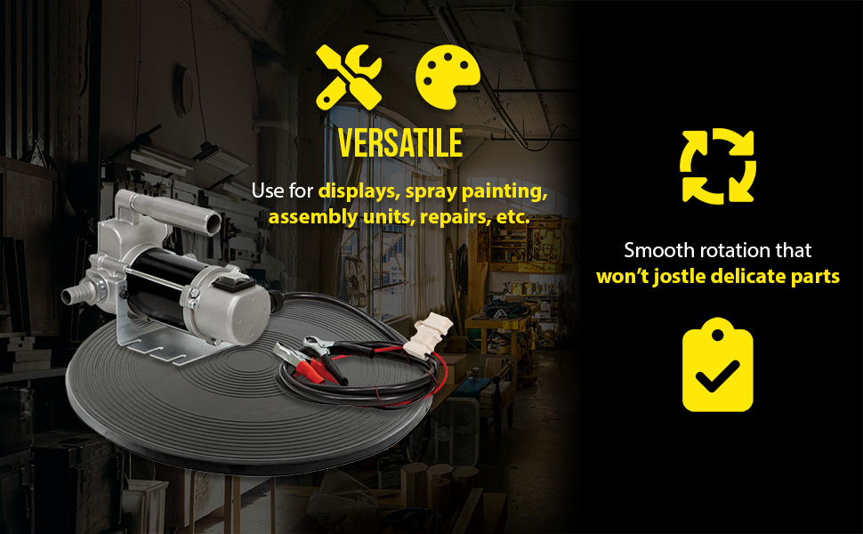 The Heavy-Duty Manual Turntable maximizes workspace and minimizes wasteful motion. Bench top turntables allow workers to stay in one position and rotate items for access from all sides. No need to walk around the table to access areas out of view. Easy and smooth bearing motion. Used in hundreds of applications; displays, paint spraying, assembly units, repairs, etc. Easy, smooth rotation won't jostle delicate parts. Rugged 5/16" steel plate construction. The double tier units, suffix DPED and CDPED, feature a stationary shelf for storing parts and tools. Series PED and DPED feature a turn knob height adjustment operation while the CPED and CDPED feature a gas cylinder up and down mechanism (similar design as office chairs).