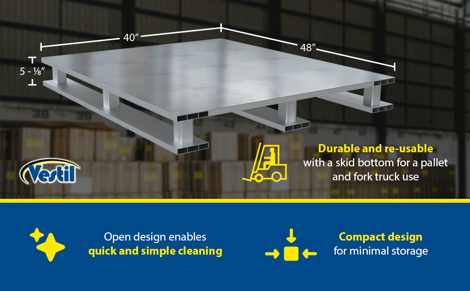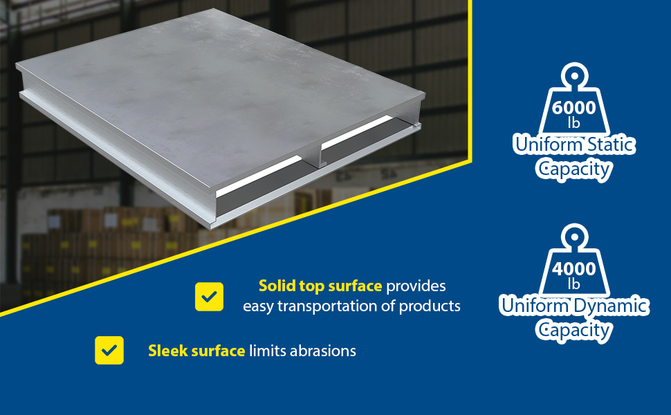 AP-ST-4824 AP-ST-4824Aluminum Heavy Duty Solid Top Half Pallet 24 In. x 48-1/8 In. x 6 In. 4000 Lb. Capacity SilverUniform Capacity (lb.): 4,000