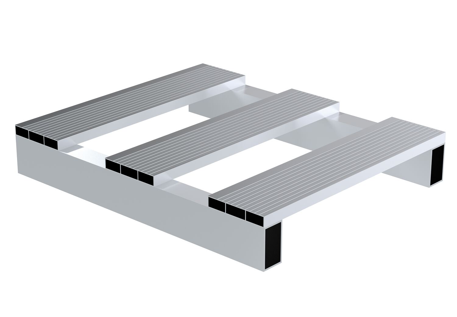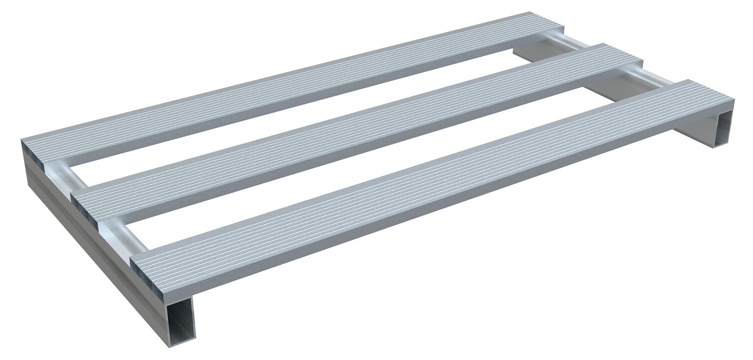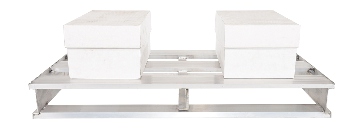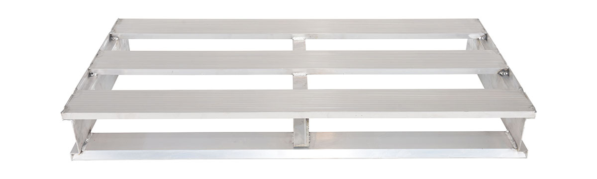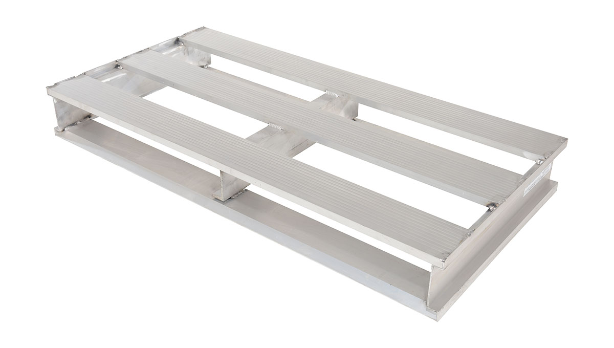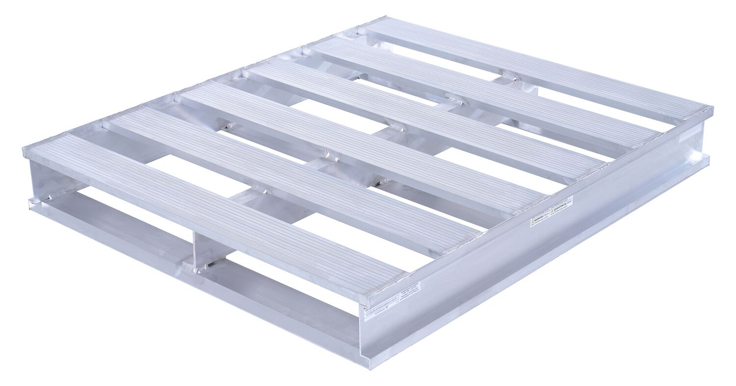 A welded Aluminum Pallet is a great asset for a variety of industries. The open design enables quick and simple cleaning. This pallet is durable and re-usable with a two-way entry for pallet and fork truck use. Large static capacity allows for load both big and small.