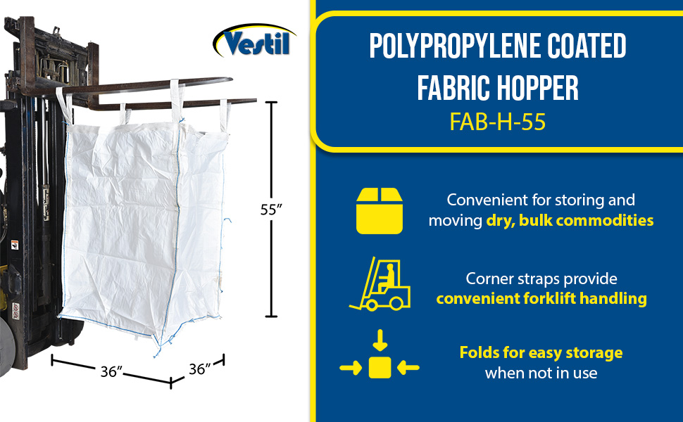 FAB-H-55 FAB-H-55Polypropylene Coated Fabric Hopper 50 Cubic Foot 3,300 Lb. Capacity WhiteUniform Capacity (lb.): 3,300