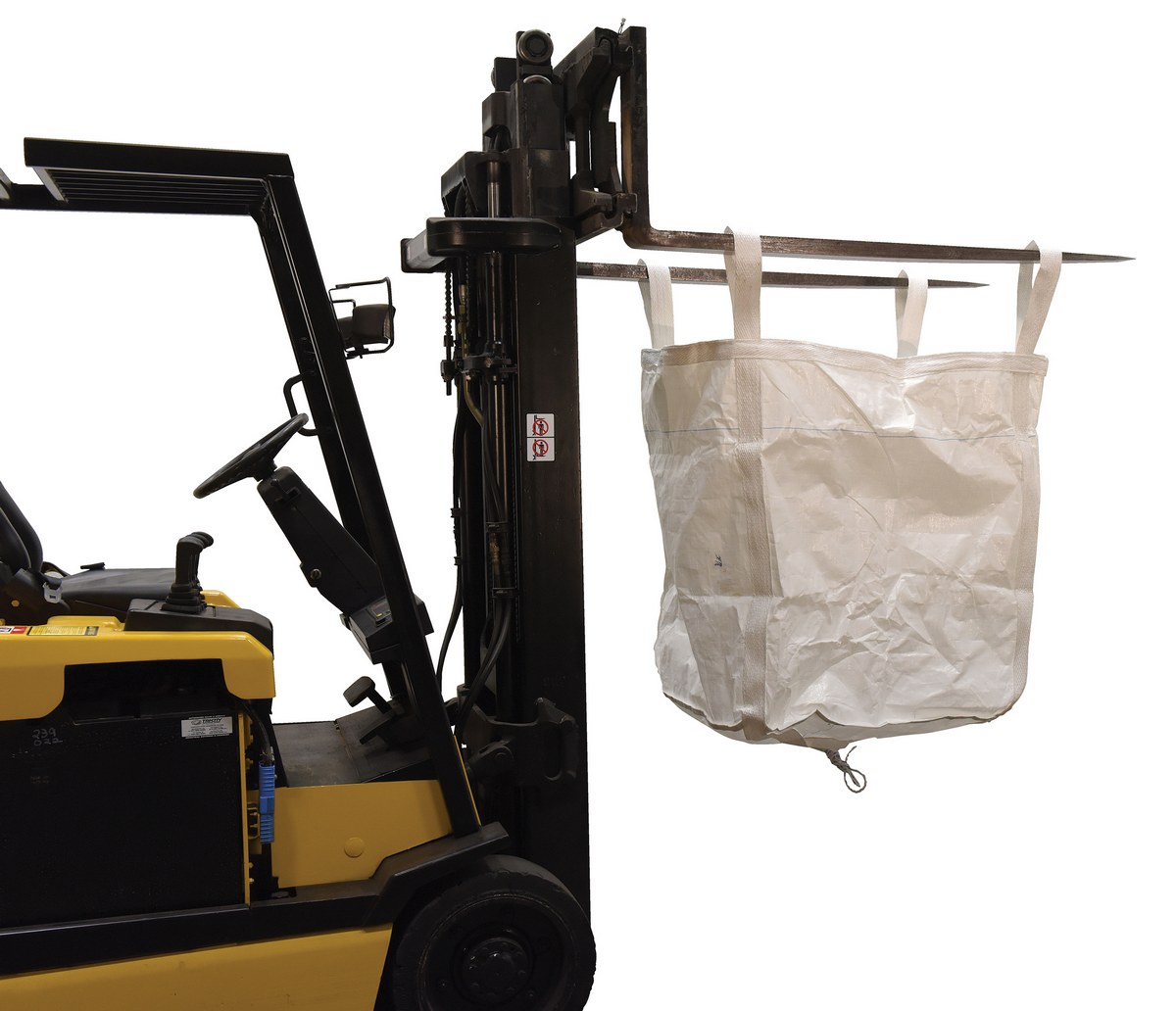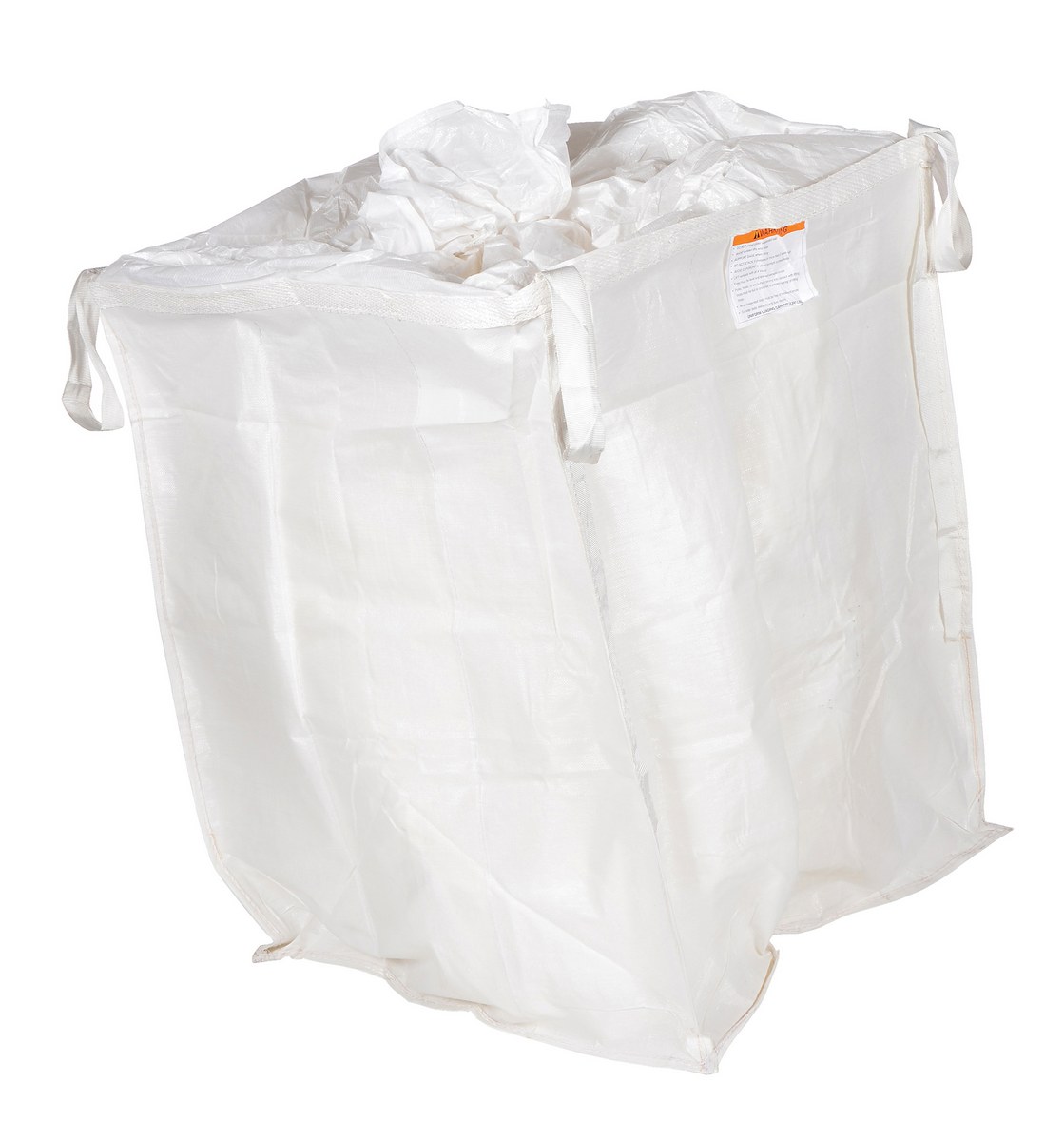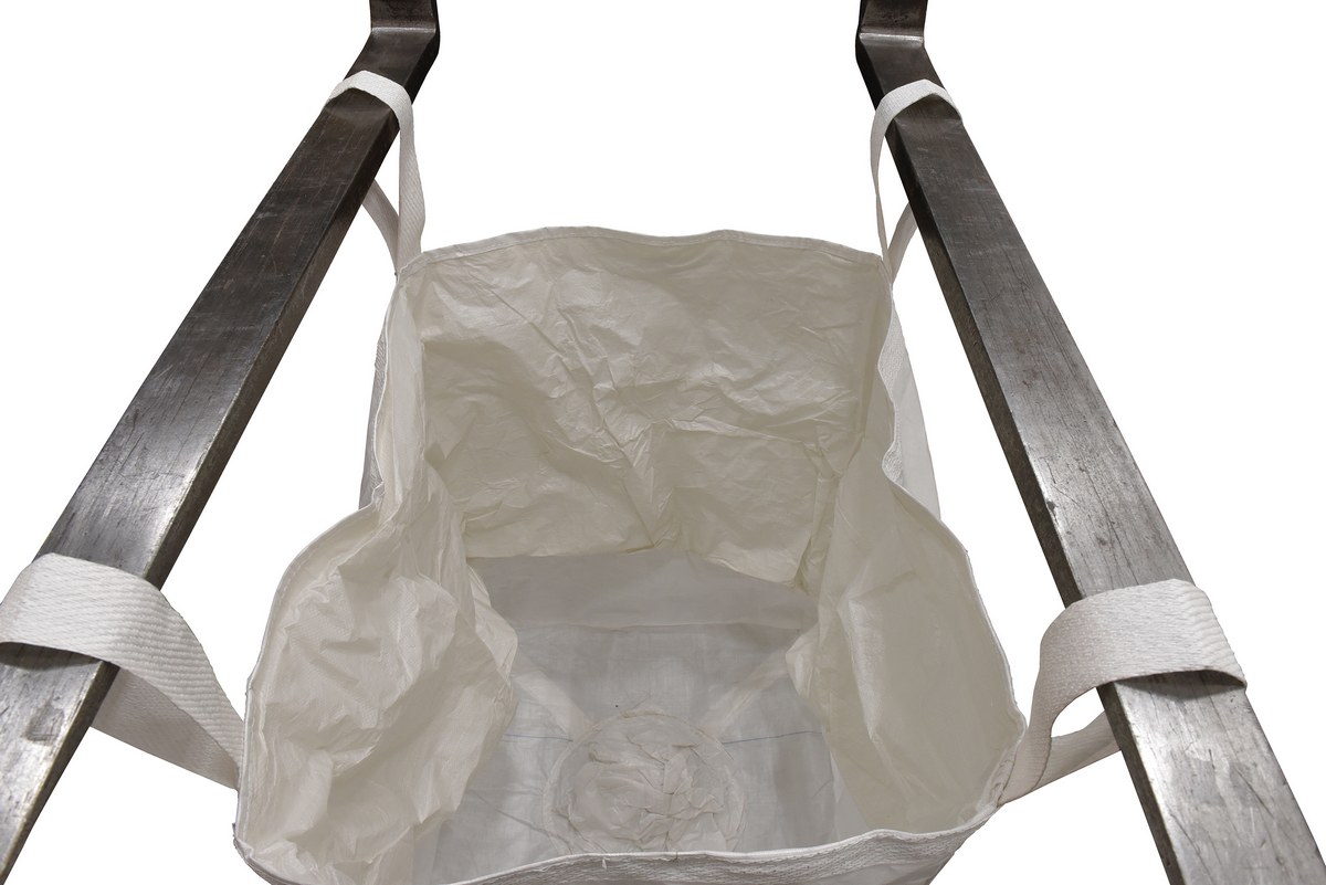 These fabric hoppers provide an economical and convenient means for storing and moving dry bulk commodities. The coated polypropylene has a polyester webbing for extra strength. The 8 oz. white fabric is UV treated. Fold for easy storage when not in use. The 4 corner straps provide convenient forklift handling, while the bottom of the unit can be opened for simple release of products. Capacity 3300 lbs.