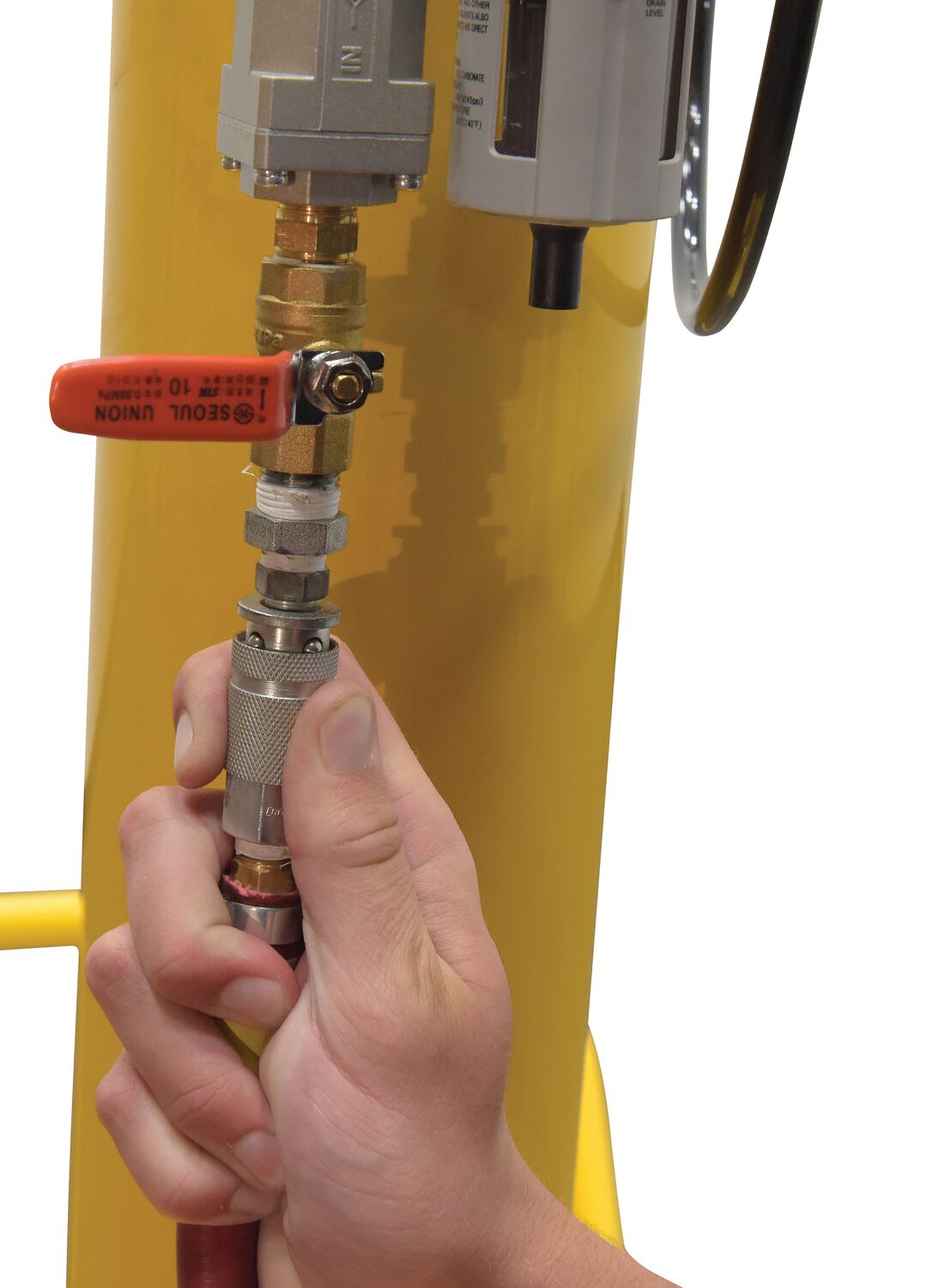 • Push-button hand control operates the pneumatic cylinder