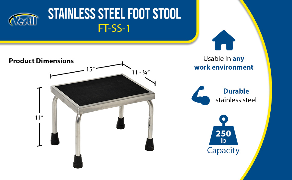 FT-SS-1 FT-SS-1Stainless Steel Foot Stool 11-1/4 In. x 15 In. x 11 In. 250 Lb. Capacity SilverUniform Capacity (lb.): 250