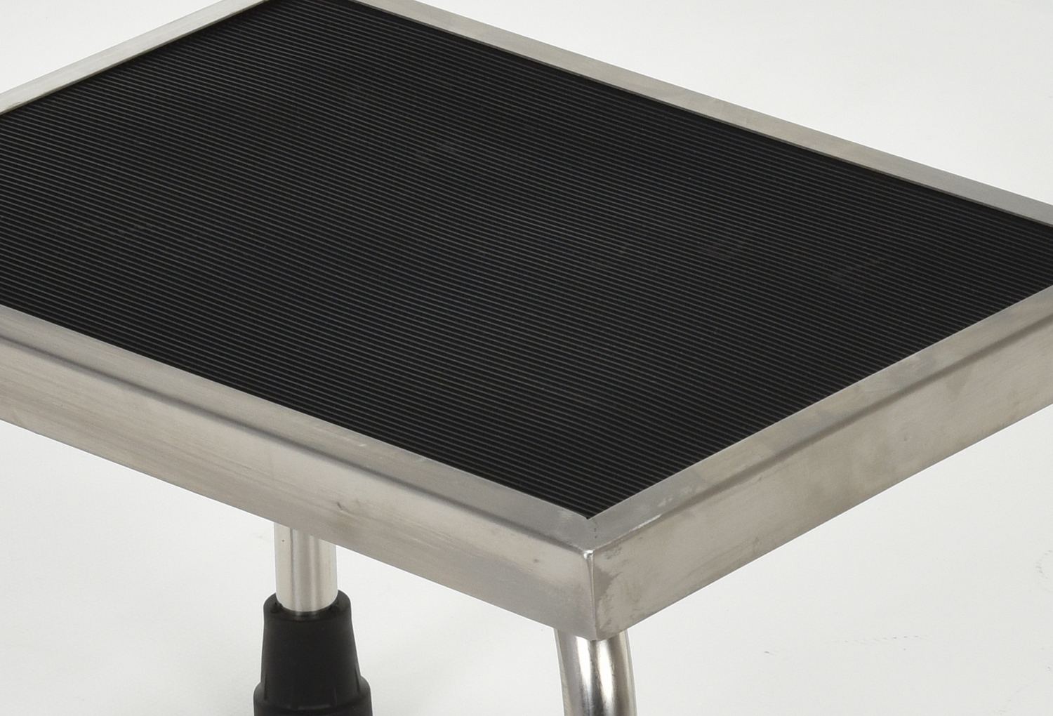 The stainless steel step stand is ideal for the school, home, or industrial facilities. The stainless steel construction is durable and long lasting in the harshest of conditions. Both models contain a slip resistant tread for stability. Model FT-SS-1HR includes a handrail for better personal steadiness when reaching for high objects. Uniform capacity is 250 pounds.