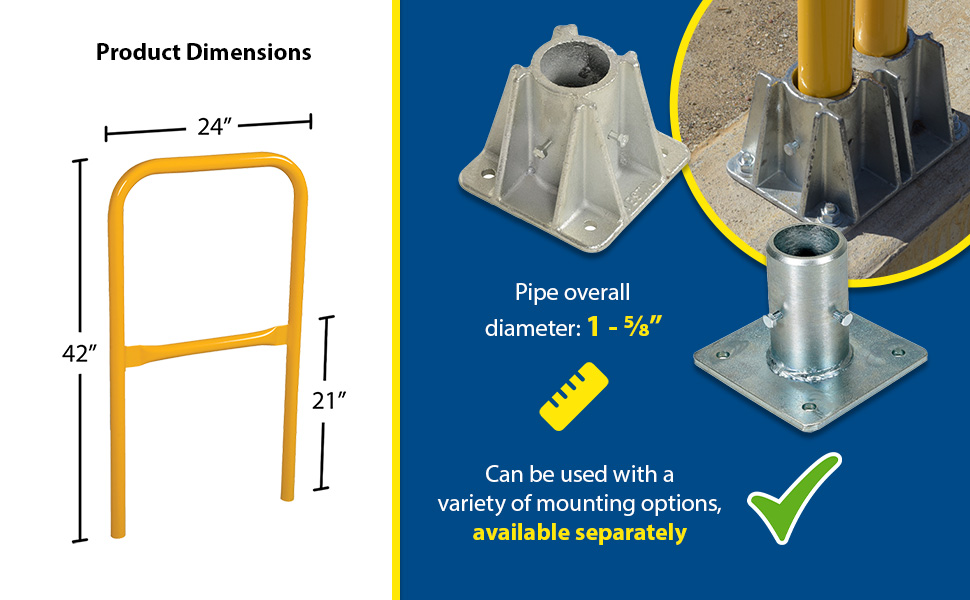 Steel Pipe Railing Barricade Base with Feet Yellow | 90 Days Limited Warranty | 6 |