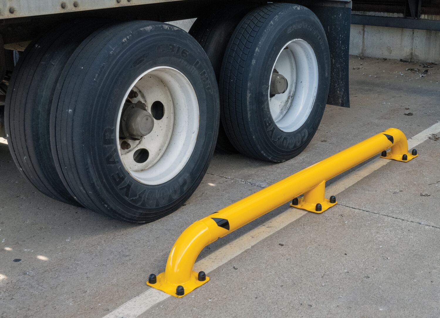SWAC-92_D.jpgIdeal for properly aligning trailers at loading docks. All welded steel construction suitable for indoor or outdoor use. Units must be secured to surface. Heavy-duty welded-steel construction with a yellow baked in powder-coat finish for toughness. 8" x 8" base plates, each with (4) pre-drilled holes standard.