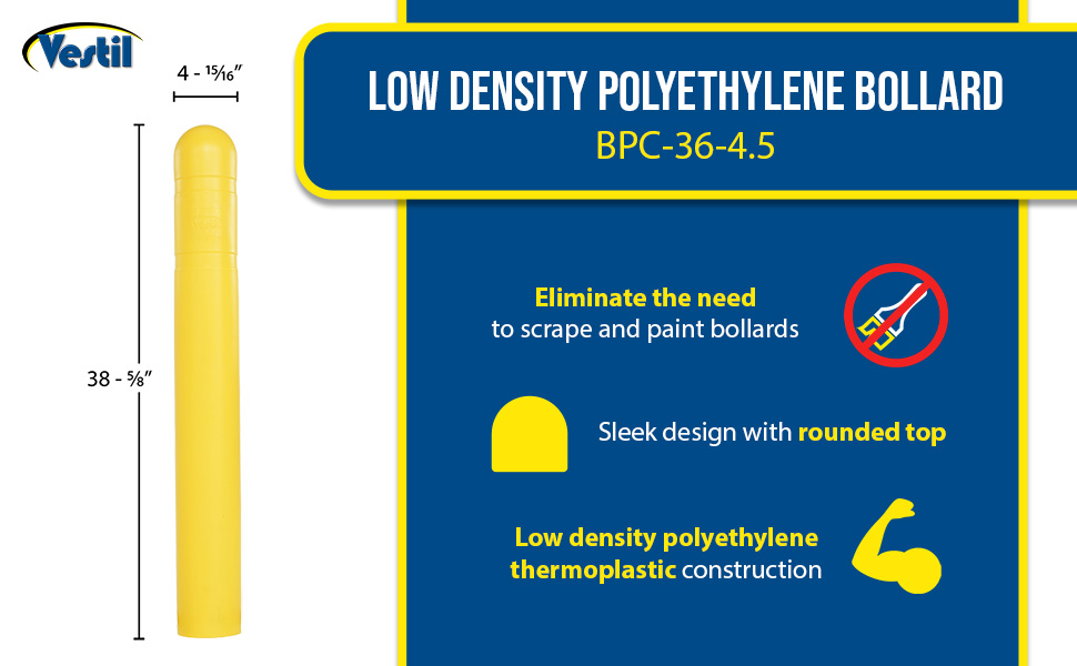 BPC-48-4.5 BPC-48-4.5Low Density Polyethylene Bollard Post Cover 48 In. x 4-1/2 In. YellowInside Diameter (in.): 5-3/16