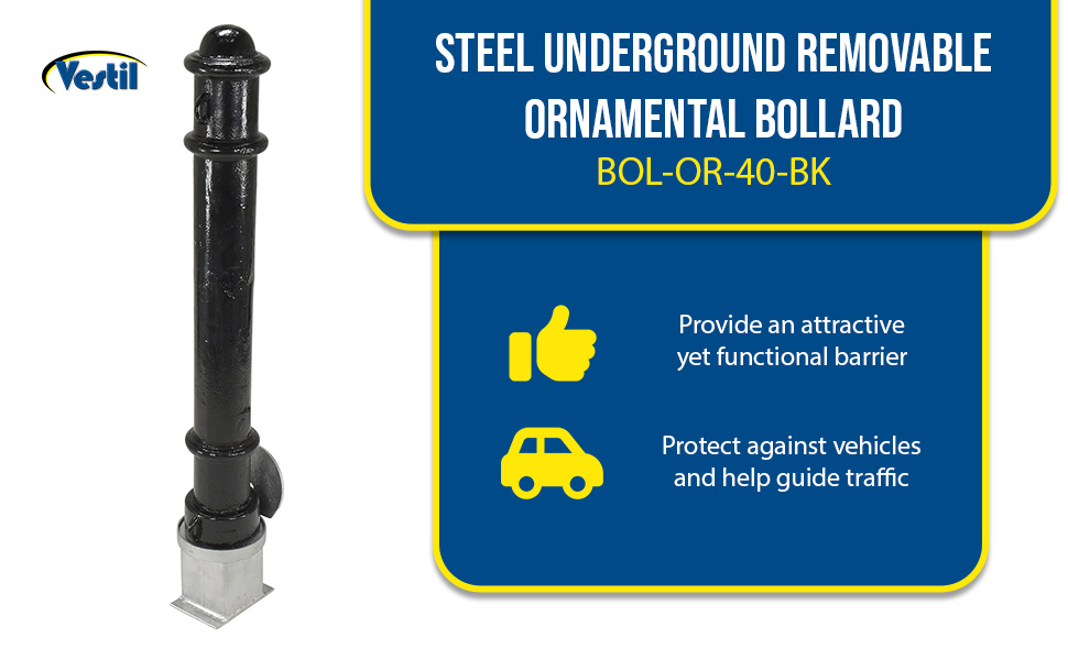 BOL-OR-40-BK BOL-OR-40-BKSteel Underground Removable Ornamental Bollard 40 In. BlackBollard Diameter (in.): 4-1/2