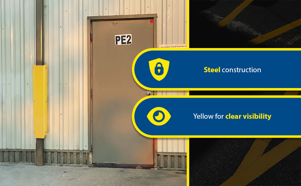 Protect down spouts and pipes attached to buildings from damage caused by fork trucks, vehicles, and mowers. Our Steel Down Spout Guards fit around standard down spouts. Easy bolt on installation (installation hardware not included). Steel construction for optimum strength. Baked-in powder coated toughness.