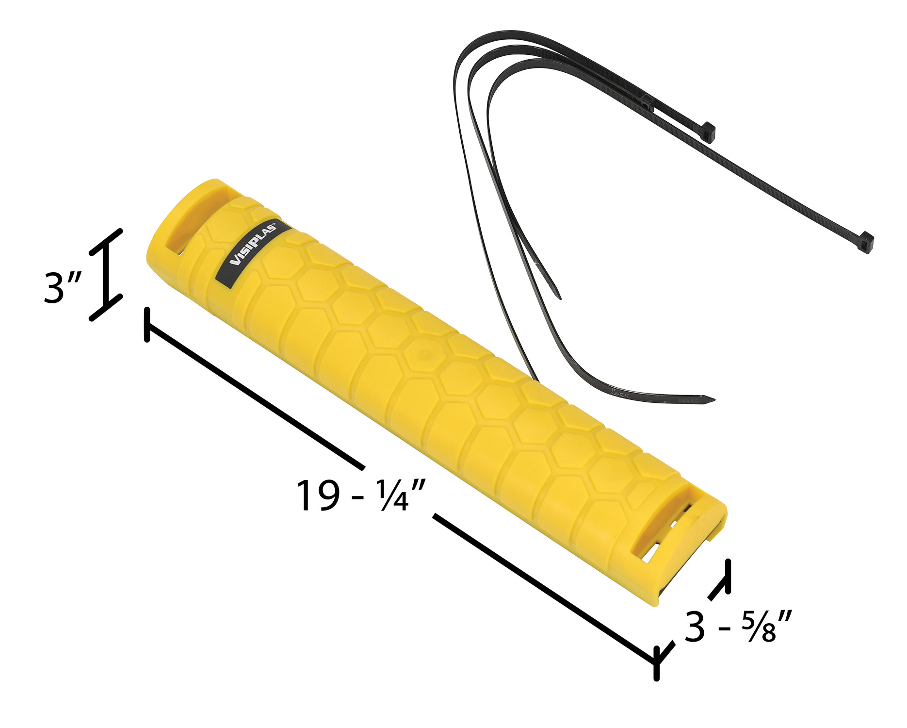 Impact resistant blended polyethylene outer shell. Internal shock absorbing pad for added protection. Double stack for extra height protection. Does not require bolting to the floor. Quickly attaches to pallet rack frame with (3) zip ties, included. High visibility fluorescent yellow color.