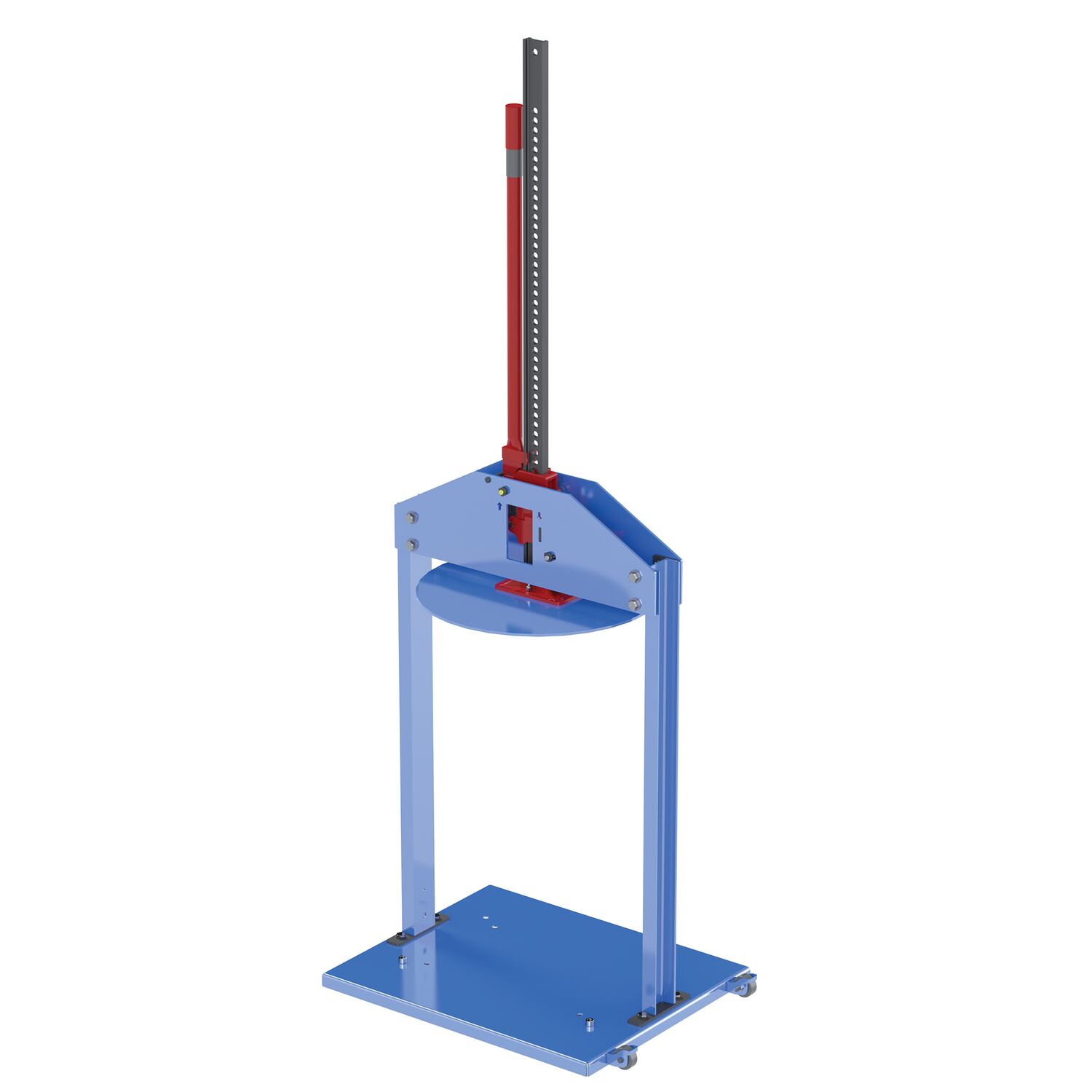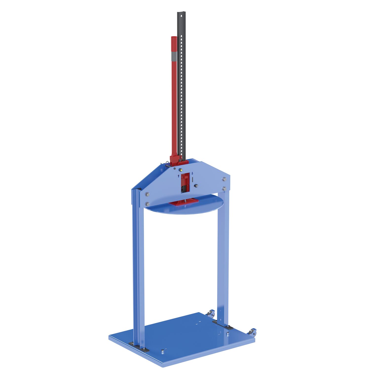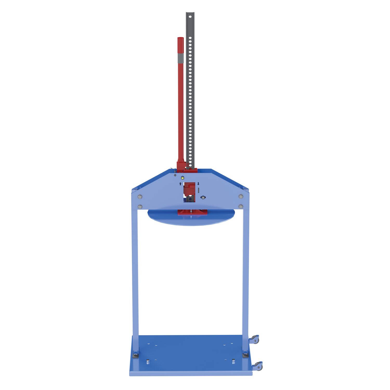 This easy to use product is designed for compacting the contents of 30 and 55 gallon drums. Manual ratcheting mechanism has 7,000 lbs of compacting force. Ratchet mechanism is also used to retract compacting plate. Compacting plate direction is adjusted with selector levers. Ratchet lever is secured in the UP position with locking pin. Includes two wheels for tilt-and-roll portability of unit when empty. Baked in blue powder coat finish for toughness. Drum not included.