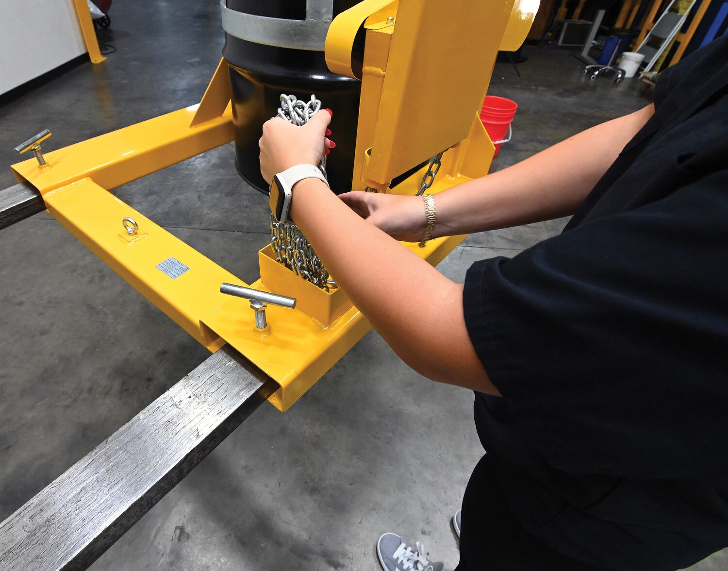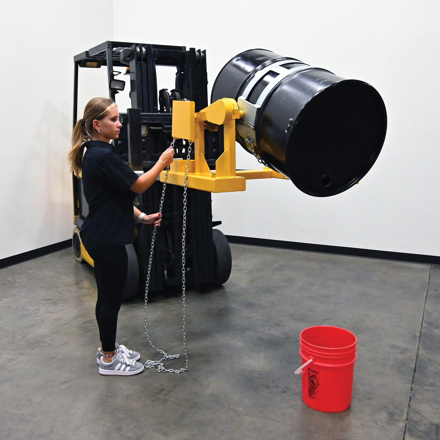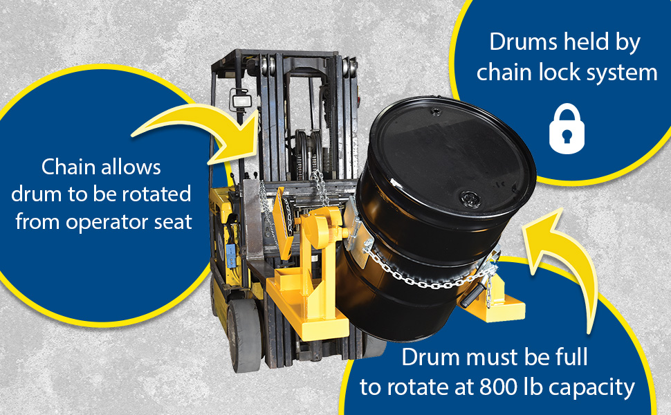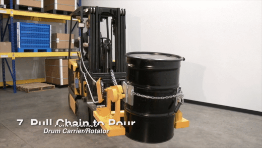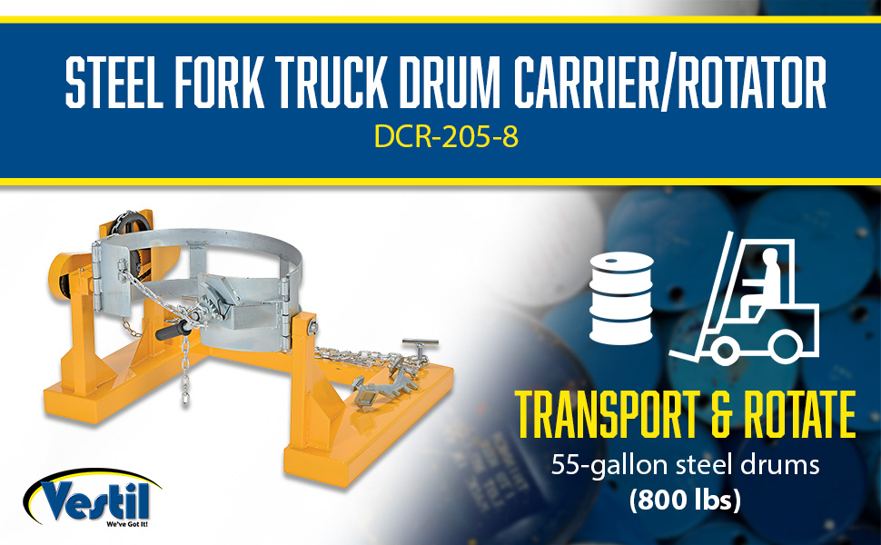 • Drum carrier/rotator allows you to easily transport and rotate steel drums using a fork truck