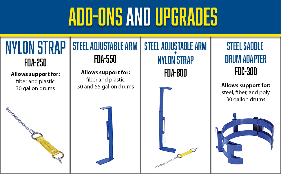 DCR-205-8-DC DCR-205-8-DCSteel DC Fork Mounted Drum Carrier/Rotator For Steel Drums 55 Gallon 800 Lb. Capacity YellowUniform Capacity (lb.): 800