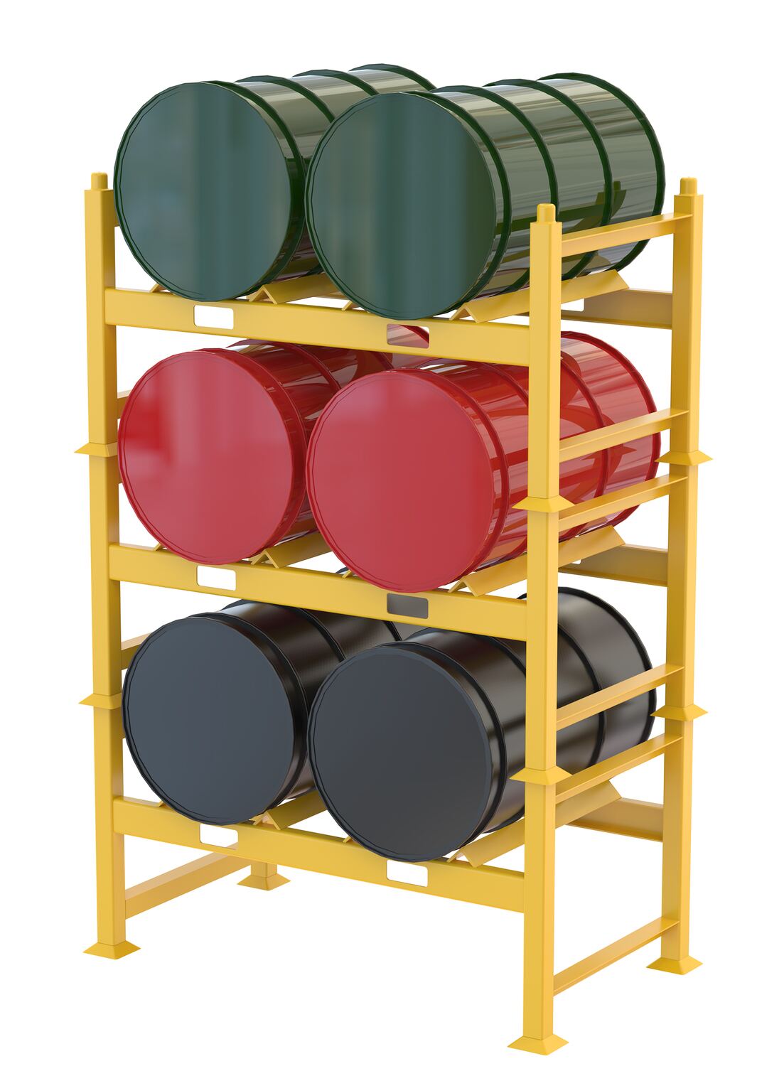 DRK-SRS-2_1.jpgThe drum storage racks provide orderly storage for 30 & 55 gallon drums. Constructed of heavy duty steel angle and cross bracing is provided for extra strength. The uprights keep drums from accidental roll off and allows forklift entry from the front or rear. Four (4) anchor pads help to prevent tipping.