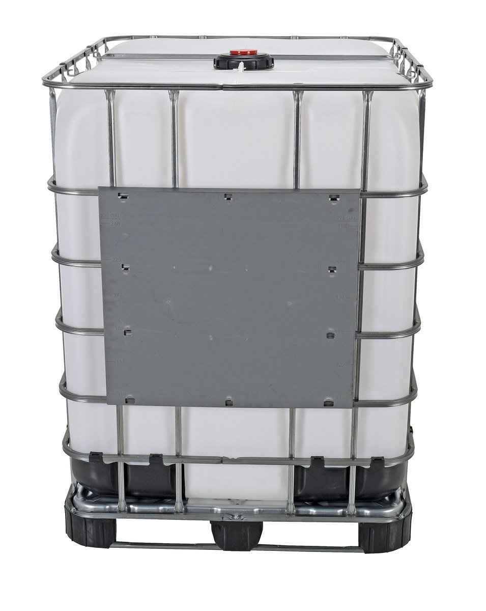 Space-savings storage containers are great for multi-trip applications. Designed for storage of both hazardous and nonhazardous contents (not to be used with flammable material such as gasoline). Easy to fill, stack and load. Hot-dipped galvanized steel cage is consistent with Food Code requirements for use in non-direct food contact environments. FDA compliant steel cage is hot-dipped galvanized. Pallet base is made from both steel and plastic. Includes inner storage tank made from white plastic with UV-blocking additive. Includes 2" butterfly valve with a durable, synthetic fluorocarbon rubber gasket. Top fill cap is 6" diameter with 2" bung. Complete units are FDA compliant, DOT certified, and UN approved. UN 31HA1/Y.