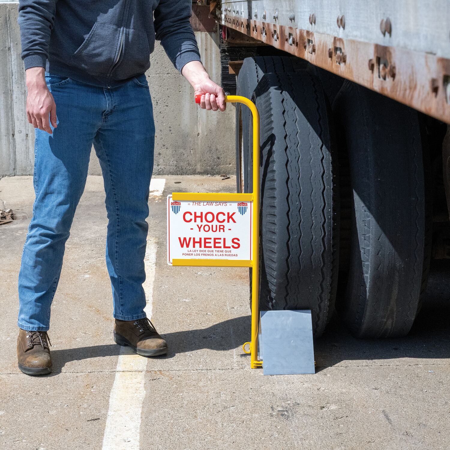 (-FYL) chock is powder coated fluorescent yellow for clear visibility.