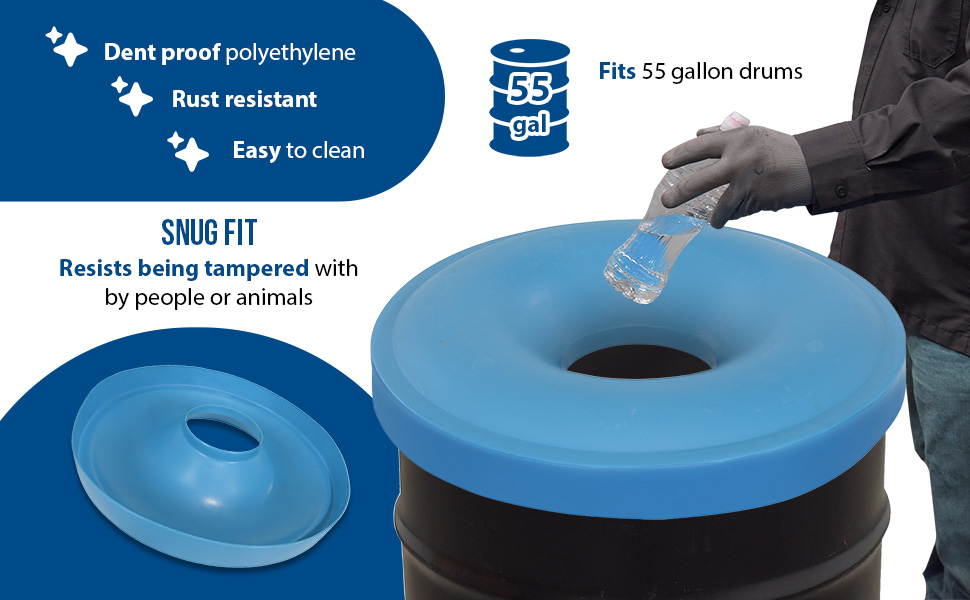 DC-P-55-CANF-UF-BU DC-P-55-CANF-UF-BULow Density Polyethylene Drum Recycling Lid with Flaps Universal 55 Gallon BlueOverall Diameter (in.): 24-5/8