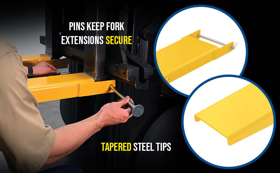 FE-5-96-P FE-5-96-PSteel Pin Style Fork Extensions 5 In. x 96 In. 4,000 Lb. Capacity YellowUniform Capacity Per Pair (lb.): 4,000