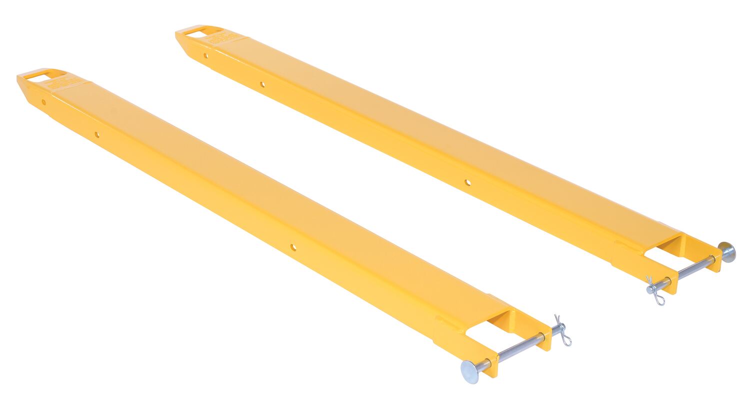 FE-4-60-P FE-4-60-PSteel Pin Style Fork Extensions 4 In. x 60 In. 4000 Lb. Capacity YellowCapacity Per Pair Evenly Distributed (lb.): 4000
