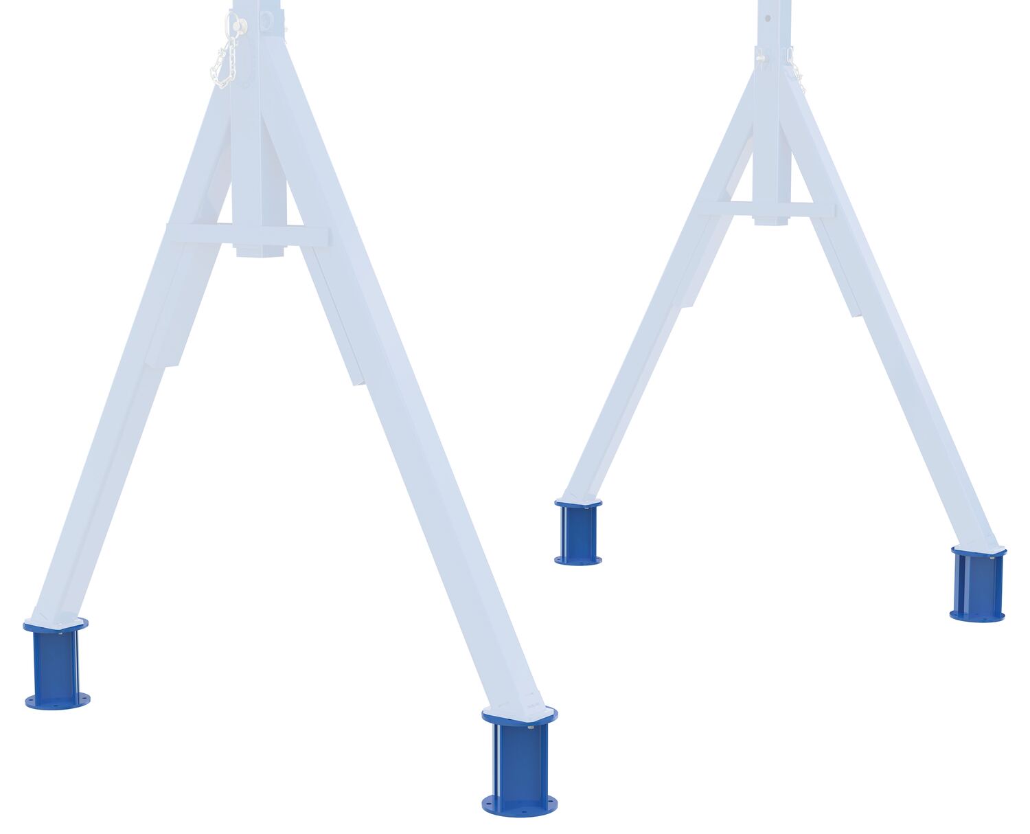 Steel Stationary Legs Kit Field Installed Quantity 4 For Steel Gantry Cranes 2,000 Lb. - 8,000 Lb. Capacity (Not to Exceed Crane's Capacity) BlueStationary leg sets are a great accessory to a gantry crane. By assigning the crane in a specific area the legs set create a solid base to a workplace. The set continues to have all the strength and durability of its portable counterpart, except the ability to roll. Field installed.