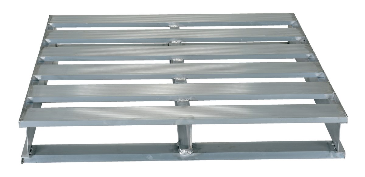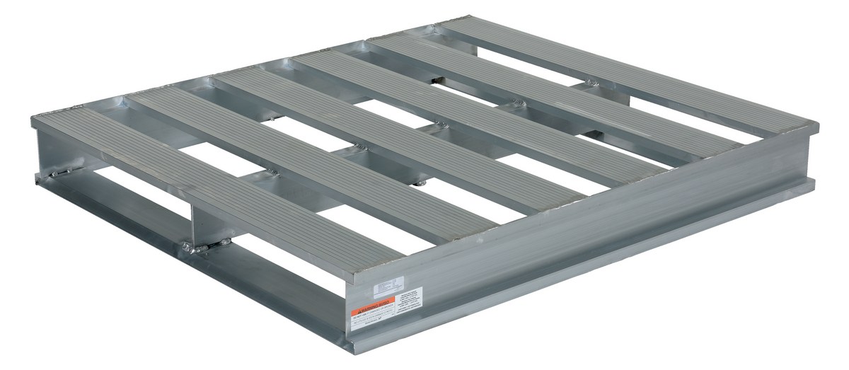 The welded Aluminum pallet is what the food and chemical industries have always wanted. The unit stands up to high-power steam, brushes, or pads. It's easy to clean with a power washer. Features a non-skid surface for easy transportation of all products. This pallet is durable and re-usable with a two-way entry for pallet and fork truck use.
