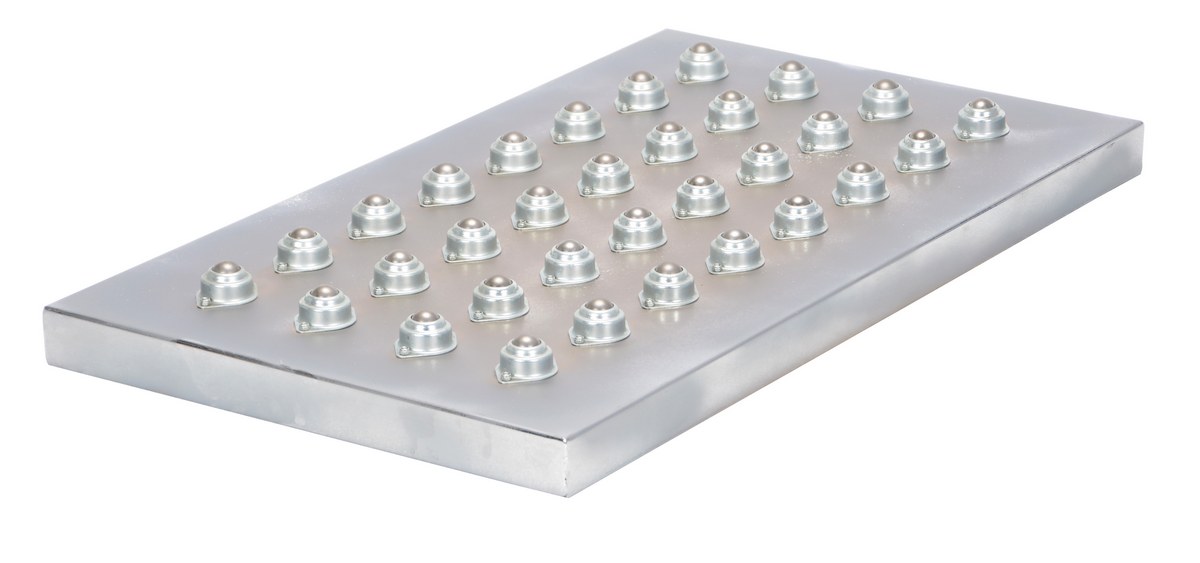 The ball transfer platform unit simply bolts on to any platform. The chrome ball transfers have a square pattern. Can attach to hydraulic and mechanical post tables and lift tables.