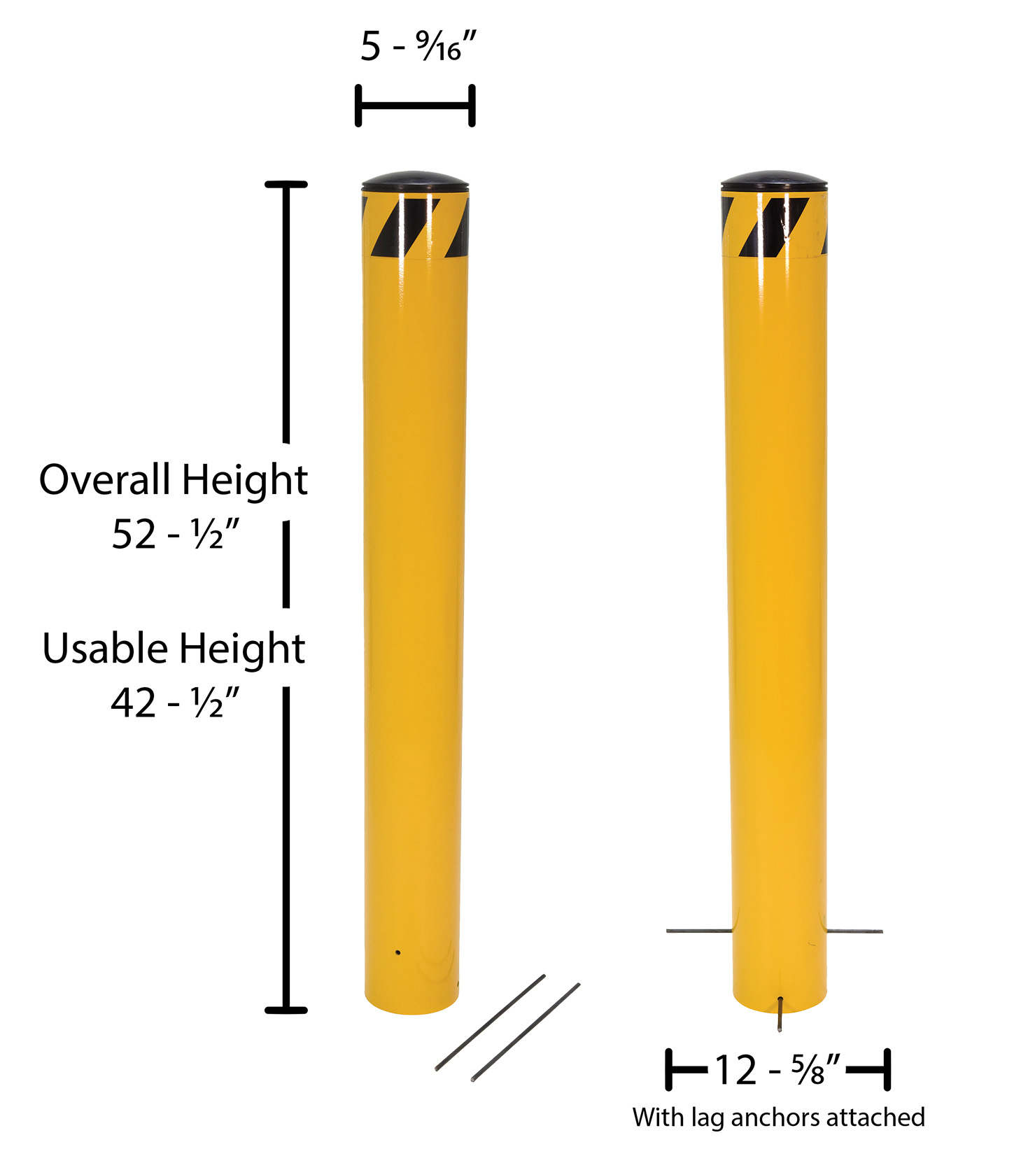 • Slide through lag anchors secure bollard in poured concrete