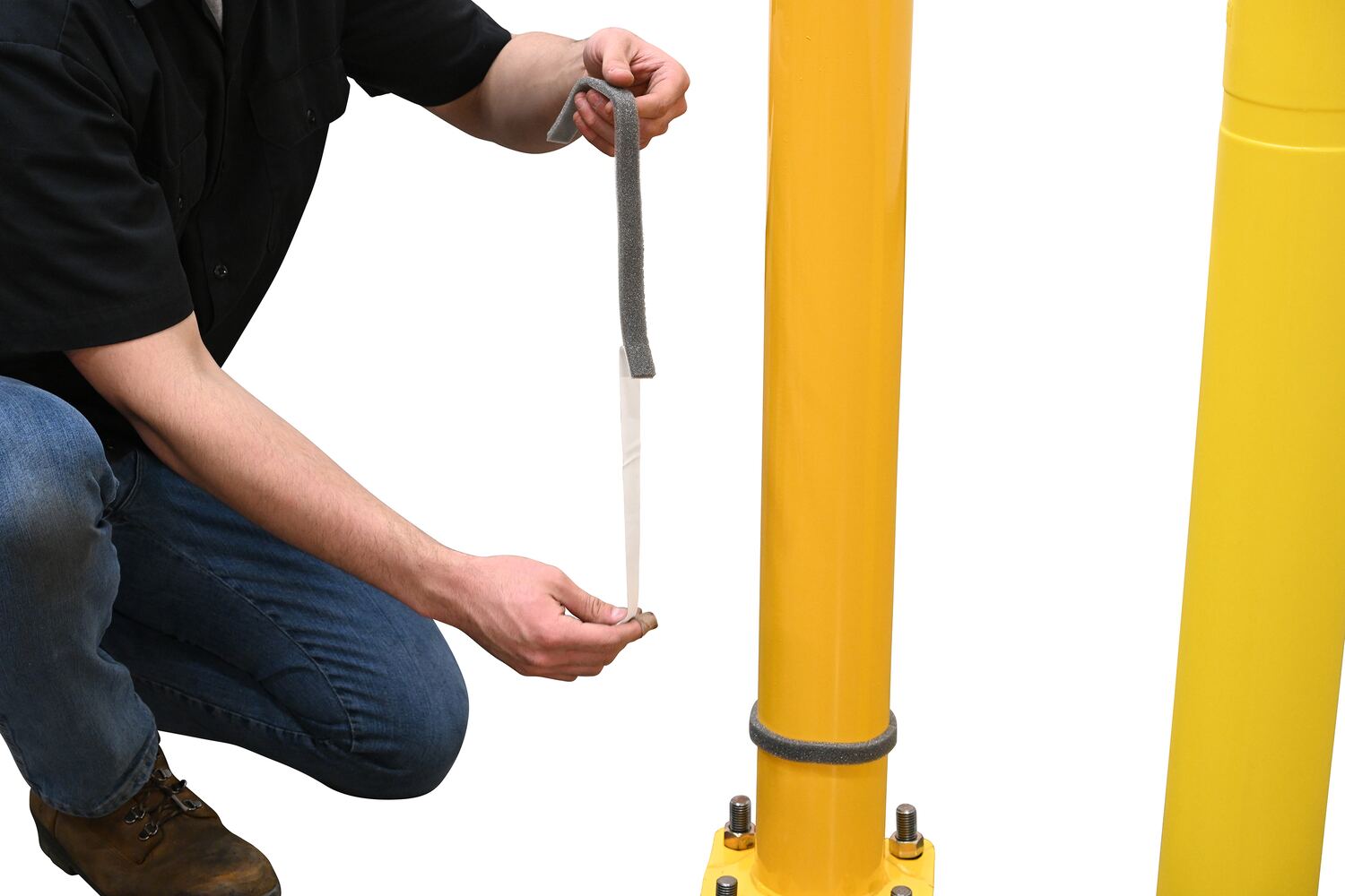 Eliminate the need for costly scraping and painting of unsightly bollards. The cover simply slides over existing bollards. Includes attaching foam strips.