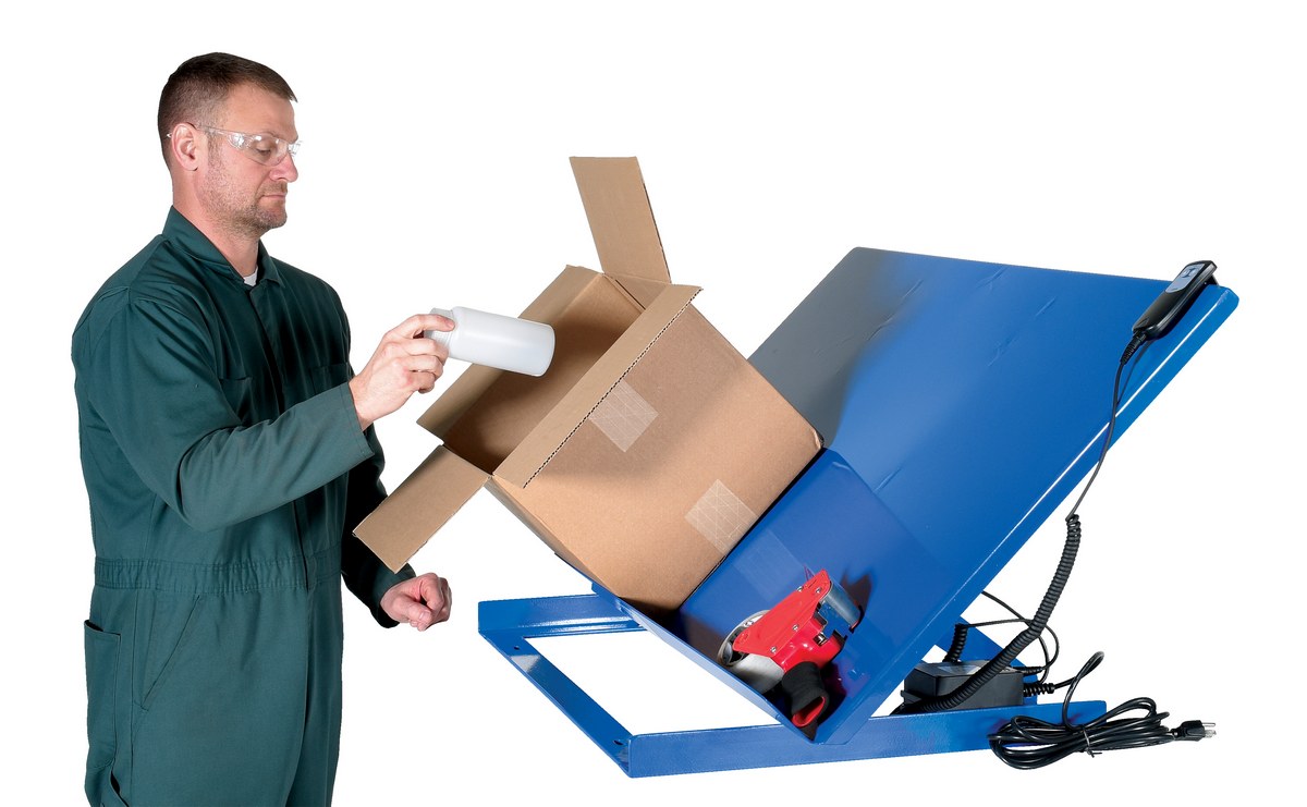 The heavy-duty bench top tilter easily attaches to most industrial table tops, work benches, and mobile lift tables of sufficient load capacity and surface size. The unit slides back as it tilts to maintain the center of gravity over the frame. Manual units can be adjusted only when unloaded and the linear actuated units are equipped with a push-button hand pendant control. The flat base plate has slotted holes for installation.