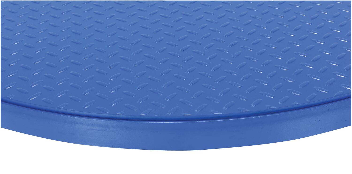 Steel 30 In. Carousel, 4K Capacity, Round Tread Top Plate BlueThis manual carousel rotates material with the assistance of an operator. Now, loading and unloading operations can be done more efficiently minimizing fatigue and risk of back injury. The carousel may be added to an existing work bench, scissor table, or simply placed on the floor. A steel constructed top plate is included with the carousel for enhanced stability during use.