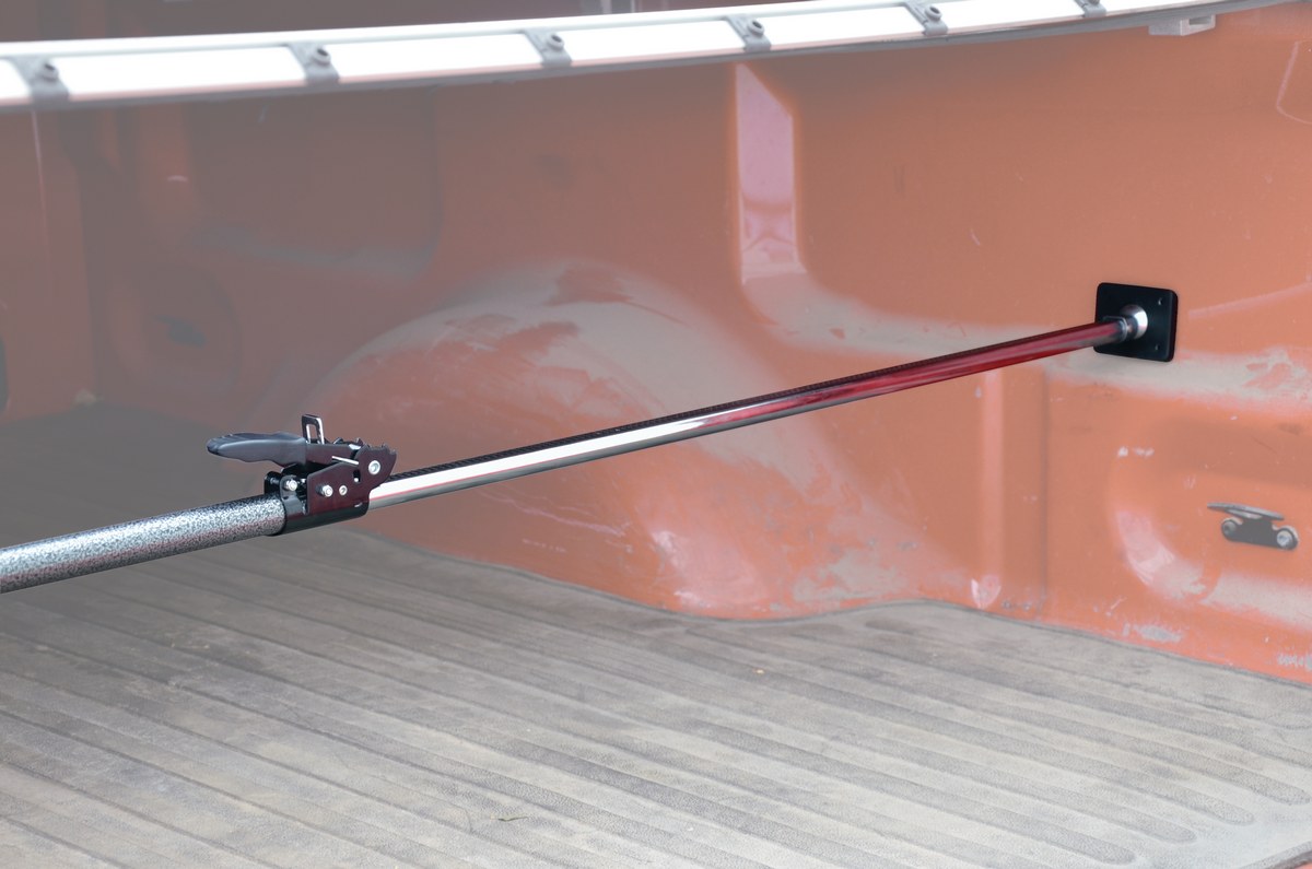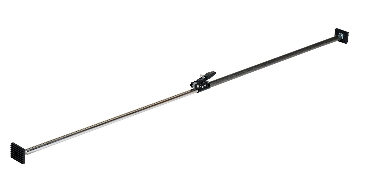 The adjustable length cargo bar solves the problem with shifting loads in pick-up trucks and vans. Heavy-duty ratchet design easily secures cargo within the truck bed or can walls, and a fingertip mechanism offers easy release of the restraint bar. Articulating ends with rubber pads help prevent slippage. Durable tubular steel construction features a superior textured powder coat finish.