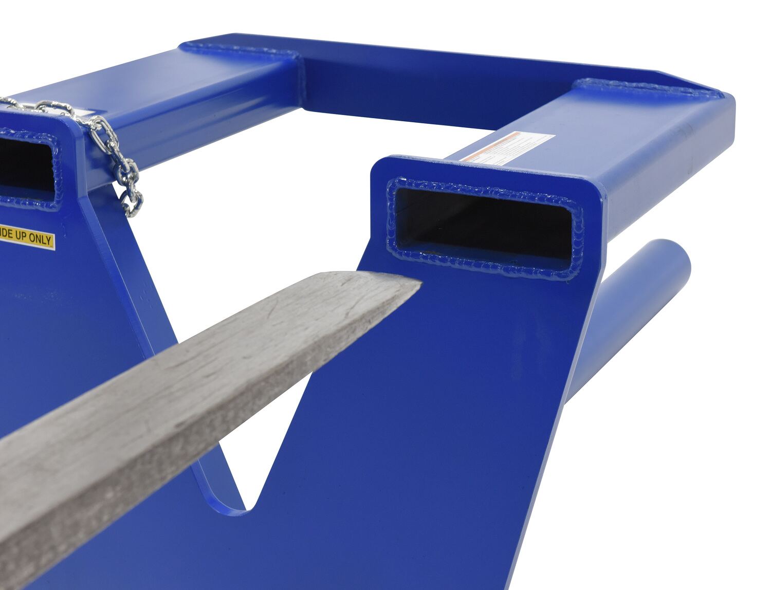 Steel Coil Lifter Fork Mounted Inverted 60 In 3000 Lb Capacity BlueThe coil ram/lifter is used to easily maneuver many types of coiled material. To accommodate multiple core sizes and capacities select different diameter ram poles. With a sturdy steel construction, the carriage mounted unit is class II with a spring loaded lock pin to secure the unit to fork truck carriage.
