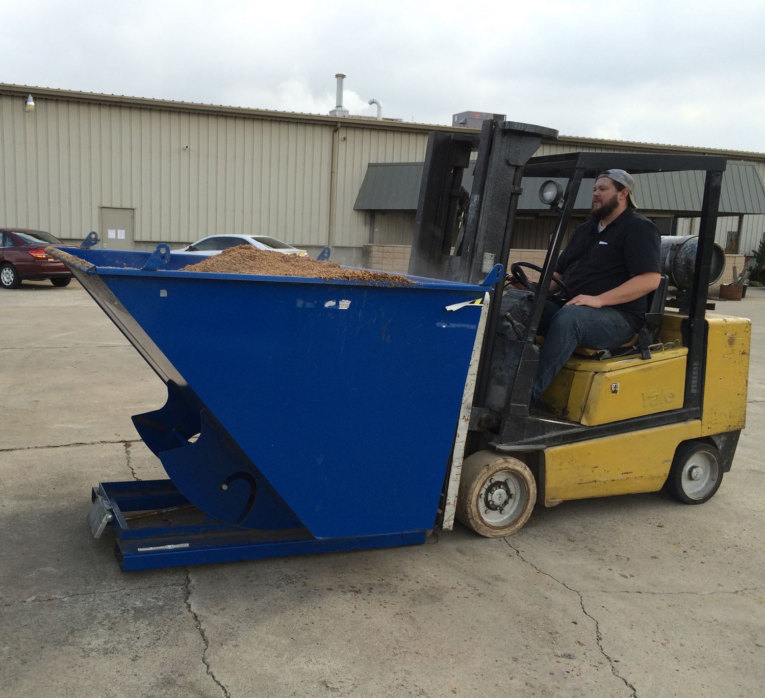 This Medium Duty self-dumping steel Hopper with bumper release automatically dumps when bumper release contacts the front of the dumpster. Hopper returns to an upright and locked position automatically after it dumps. Also includes a cable that may be operated from the seat of the fork truck to manually dump the hopper. The included safety restraint should be properly secured to a fork truck before dumping. (Length dimension is measured at top of chute.) Self-dumping hoppers facilitate compliance with OSHA general industry rule 29 CFR 1910.178(m)(5)(iii) by allowing lift truck operators to remain at the controls of their truck throughout the dumping process.